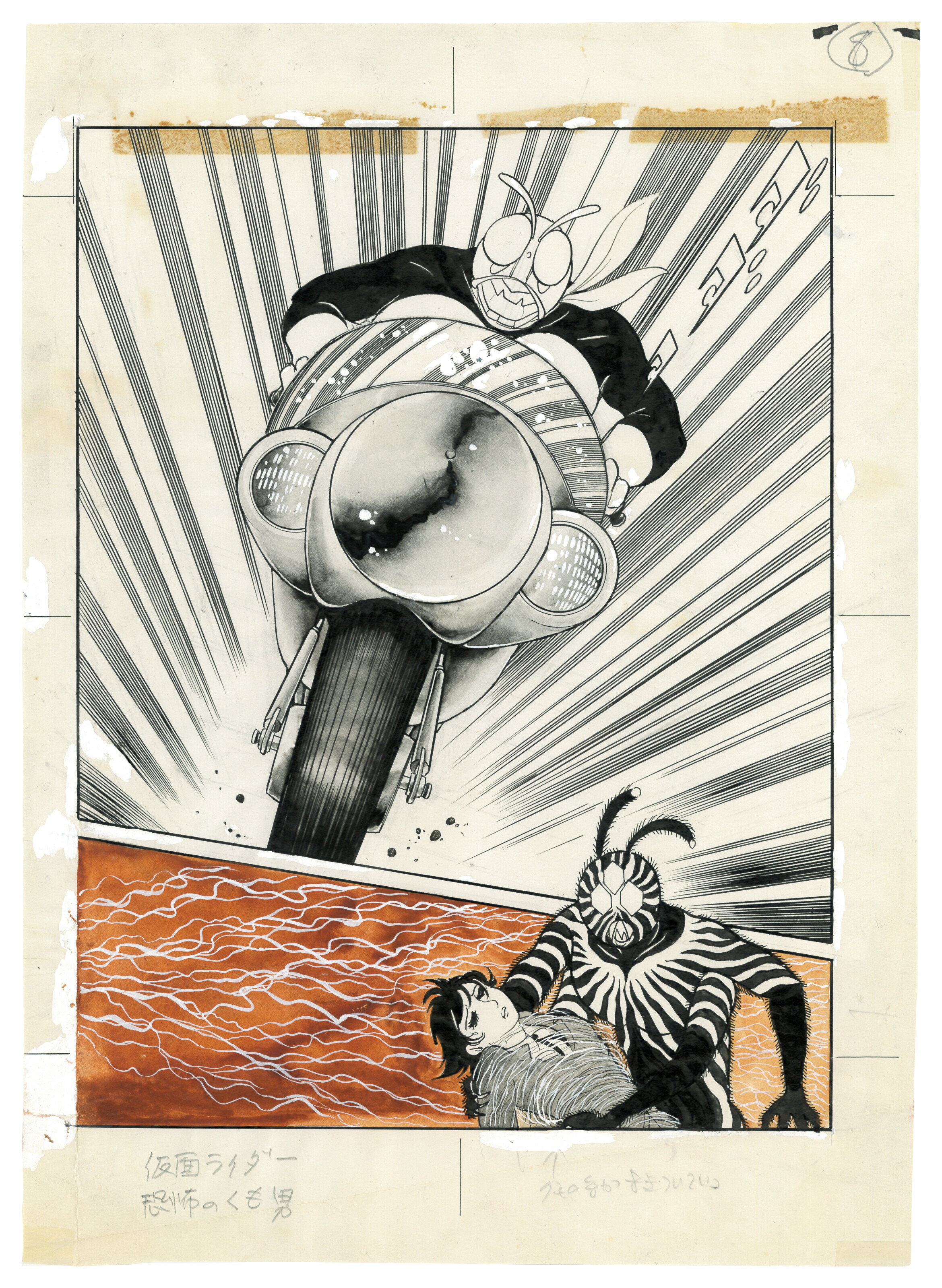 original artwork accompanied by a coloring instruction sheet; ink, color and colored pencil on paper, numbered 8 on top right corner and titled on bottom left corner