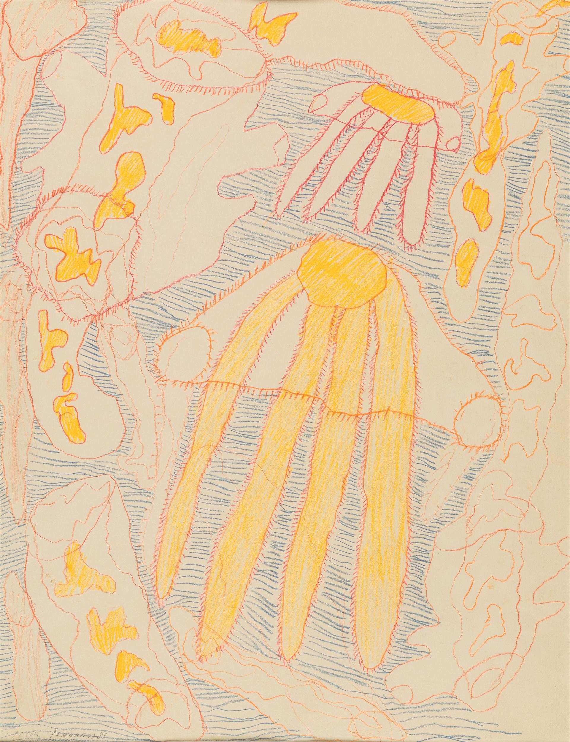 Buntstift auf Papier; gerahmt