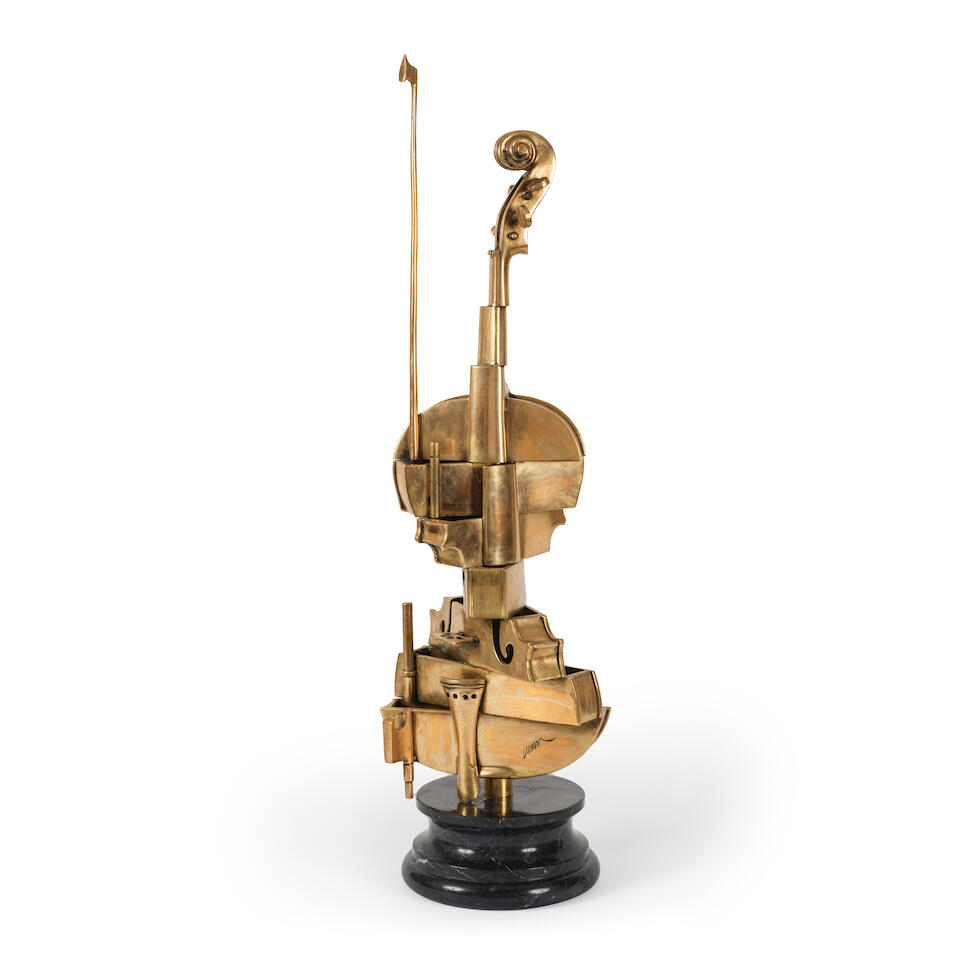 Iron, buffalo skull, sandstone, wood, plastic container, electric motor