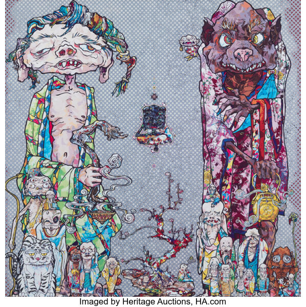 The Japanese Takashi Murakami was born in Tokyo on February 1, 1962, the son of a cab driver and a textile designer. In 1980 he enrolled at the National University of Fine Arts and Music in Tokyo and studied classical painting in the Japanese style (Nihonga). In 1993 he received his doctorate here. While still a student, he also became intensively involved with cartooning and was interested in Japanese anime and manga culture. In 1994 Takashi Murakami travels to New York on a scholarship from the Asian Cultural Council, where he participates in the study program of the P.S.1 Contemporary Art Center.