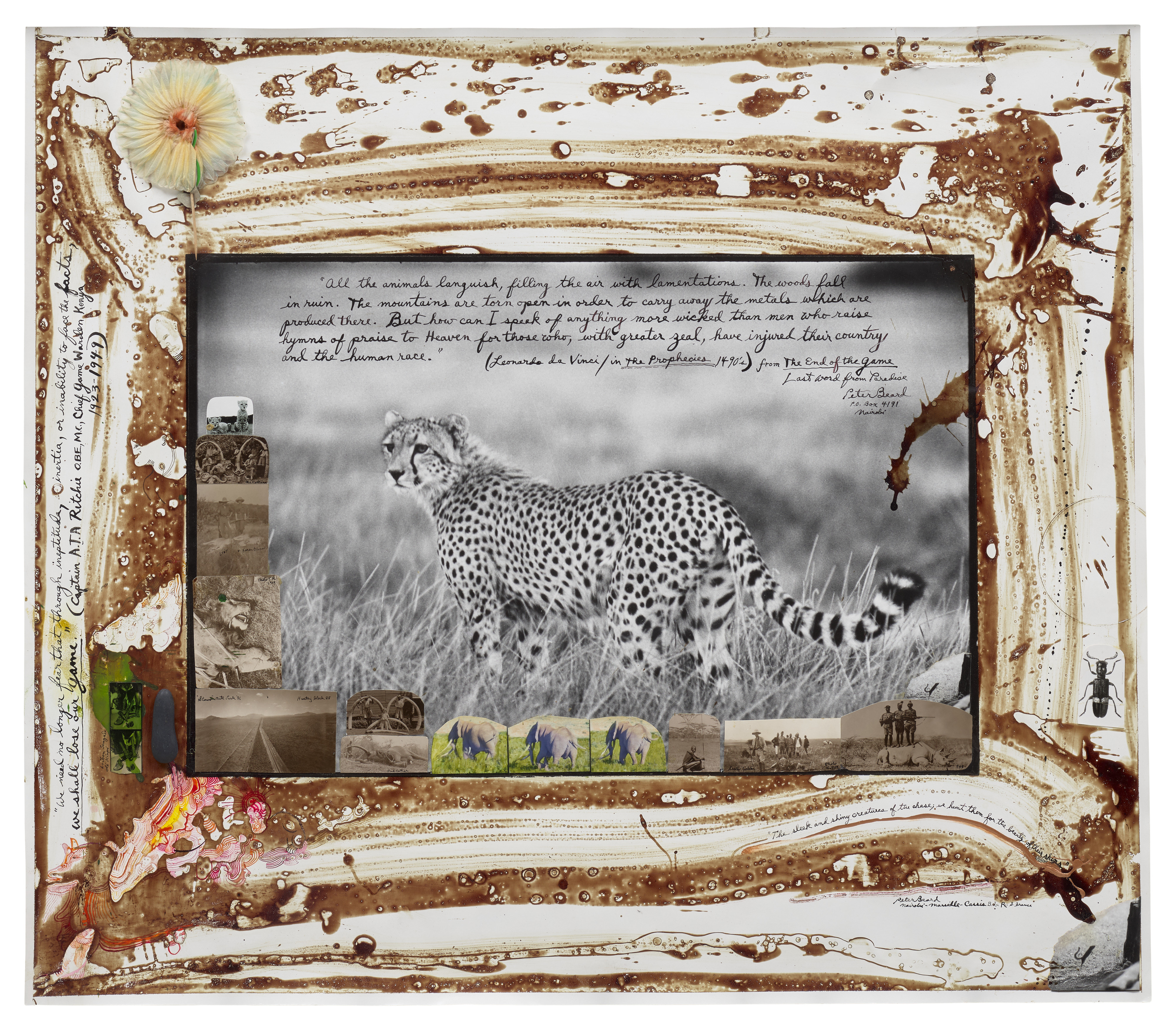 unique work, comprising a gelatin silver print with blood, watercolour, ink and affixed paper flower, pebble and photographs