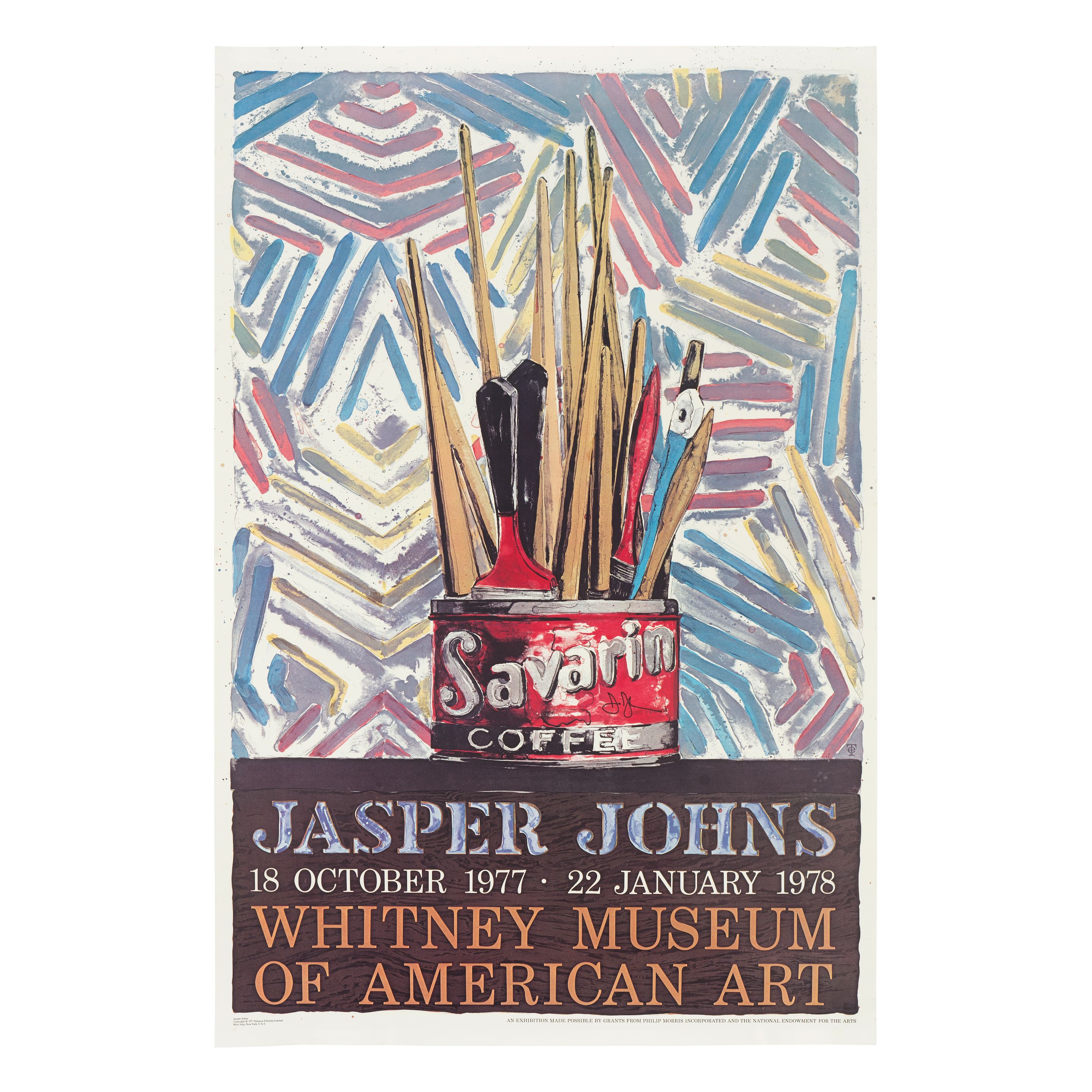 Jasper Johns 1930 Augusta/Giorgia - lives in New York and Edisto Beach/South Carolina The American Jasper Johns, born on May 15, 1930 in Augusta in the state of Giorgia, begins his career as a painter and graphic artist with studies from 1947 at the University of South Carolina in Columbia, which he breaks off, however, already in December 1948 to move to New York. Here he attended the Parsons School of Design for two semesters before being drafted into military service in 1951/52. He then enrolled at Hunter College in New York in 1952, working in a bookstore for a living. Jasper Johns moved in the hip artistic circles of New York, which was preparing to be the new center of the avant-garde in America in the 1950s with abstract expressionism, and was close friends with Robert Rauschenberg. Art in Transition from Abstract Expressionism to Pop Art Like Robert Rauschenberg, Jasper Johns belongs to the circle around the charismatic composer and artist John Cage and is also influenced by his ideas in his artistic work, which begins in the early 1950s. In a sketchbook entry, Jasper Johns writes, almost as a working instruction to himself, "Take an object, do something with it, do something else with it." Based on the gestural painting gesture, yet overcoming the transfiguring painting-only approach of abstract expressionism, Jasper Johns' interest is in the painterly representation of an object, though it does not matter what that object is. "Flags", "Targets", "Numbers", "Maps" - Flags, Targets, Numbers and Maps In 1954/55 he created the work "Flag" (now in the Museum of Modern Art, New York), the first flag painting, iconic at the beginning of the work of this pioneer of Pop Art. "One night I dreamed I was painting a big American flag. The next morning I got up and bought the material to start with," Jasper Johns describes his brainstorming in an interview. This is followed by a long series of paintings of the American flag, supplemented by series of works with the famous "Targets", as well as the "Maps", maps, and the "Numbers" with the numbers 0 to 9 superimposed on each other or painted in sequence. By repeating the same object over and over again, Jasper Johns does not focus on what is depicted, but on the way it is depicted. To depict the American flag, Jasper Johns collages newspaper clippings onto canvas and paints over them using the technique of encaustic, pigments mixed with hot wax. Due to the rapid cooling, the encaustic leaves all traces of the paint application, both brushstrokes, accumulations of paint and drips, visible and many times more emphasized than the pure application of paint. Jasper Johns used standardizing stencils for the first numerical images, which began to appear in 1955. Over the years, the representations become more and more complex; through the superimposition of the numerals, they lose their structure, are no longer recognizable, and virtually dissolve. Precursor of Pop Art Jasper Johns abolishes the traditional distinction between everyday objects and art objects in his works, which makes him a precursor of Pop Art, without his work being attributed to this style. In the artistic representation with colors, collaged components and their alienation character, Jasper Johns opens the free space of a new perception to the viewer, to think comprehensively about the object itself with all its positive and negative aspects, to find new associations. In 1957 the gallery owner Leo Castelli saw works by Jasper Johns in his studio for the first time and was enthusiastic. In 1958 he organizes the first solo exhibition for Jasper Johns in his gallery in New York, where Alfred Barr buys four works for the collection of the Museum of Modern Art. Ileana Sonnabend, Leo Castelli's ex-wife and herself a gallery owner, who opens her own gallery in Paris in 1962, shows Jasper Johns in Europe for the first time in November and December 1962. Jasper Johns' works are shown at Documenta in Kassel in 1964, 1968, 1972 and 1977. In 1988 Jasper Johns is awarded the Golden Lion at the Venice Biennale. In addition to paintings, Jasper Johns also creates an extensive graphic oeuvre, produces stage sets and costumes for Merce Cunningham and his Dance Company. Jasper Johns received numerous honors during his long artistic life, including induction into the American Academy of Arts and Letters (1973), the American Academy of Arts and Sciences (1984), and the American Philosophical Society (2007). In 2011, Jasper Johns was awarded the Presidential Medal of Freedom, the highest civilian honor in the United States. Jasper Johns lives in New York and Edisto Beach, South Carolina.