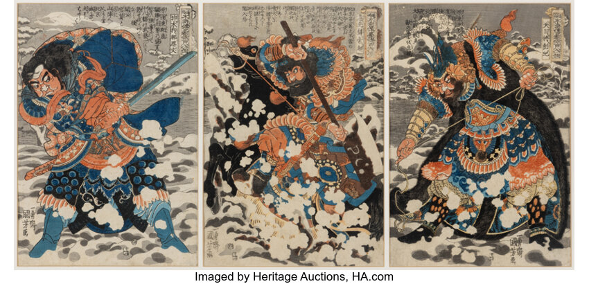 Utagawa Kuniyoshi, Group of Six Woodblock Prints, from the series Heroic St...
