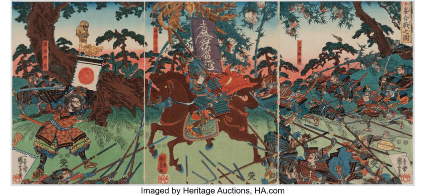 Utagawa Kuniyoshi, Group of Two Triptychs, Battle Scene, 1840s-50s
