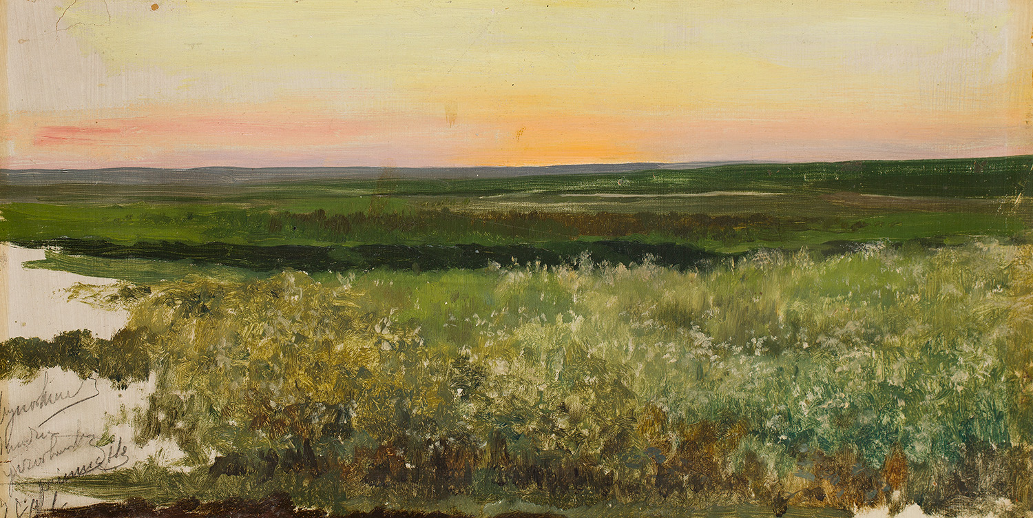 Meadows in the setting sun, before 1918