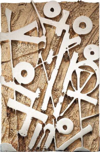 Stainless steel, crystalline, and enamel on concrete base