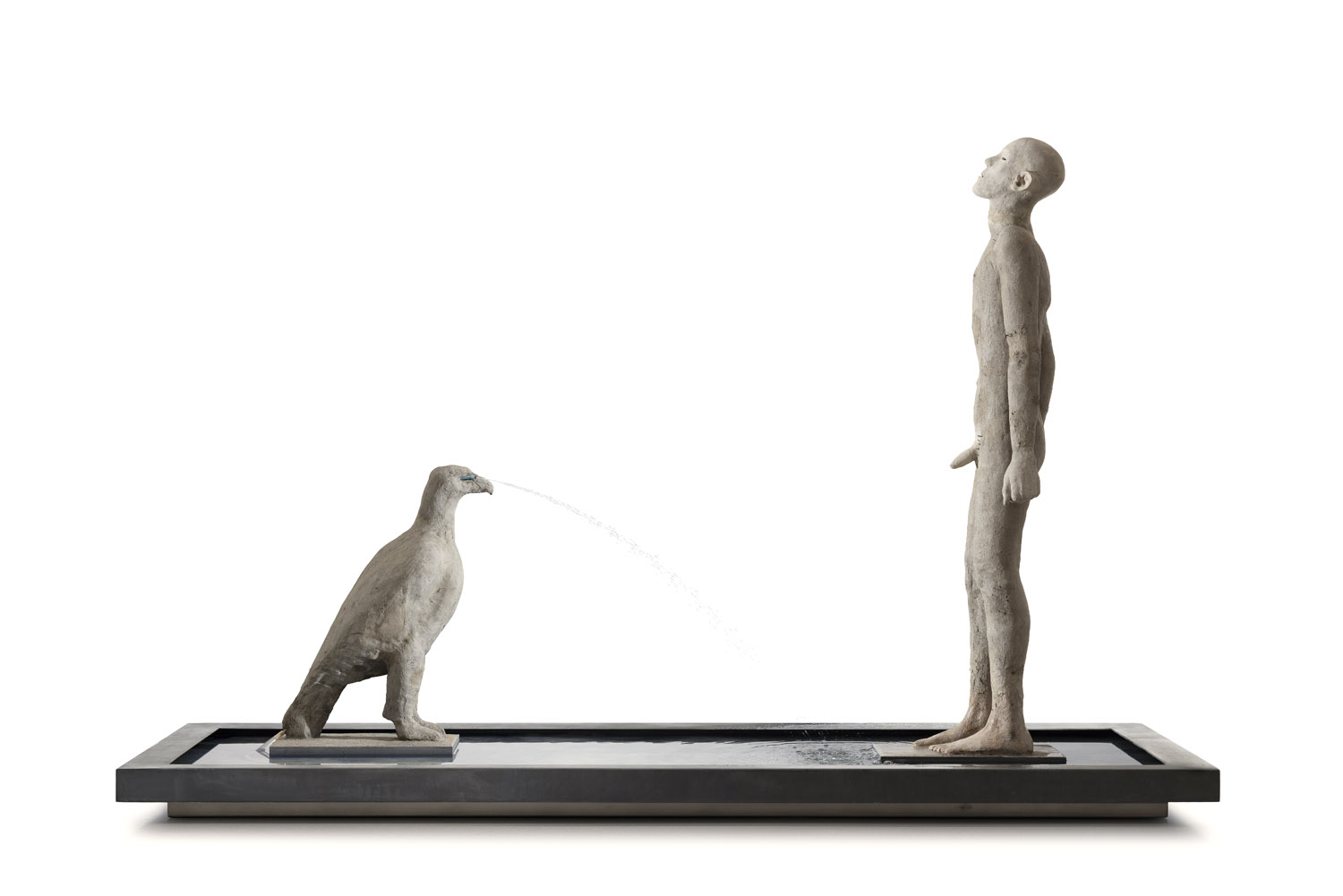 synthetic material, blacha cynkowa, pompka wodna, sztuczny kamień, woda