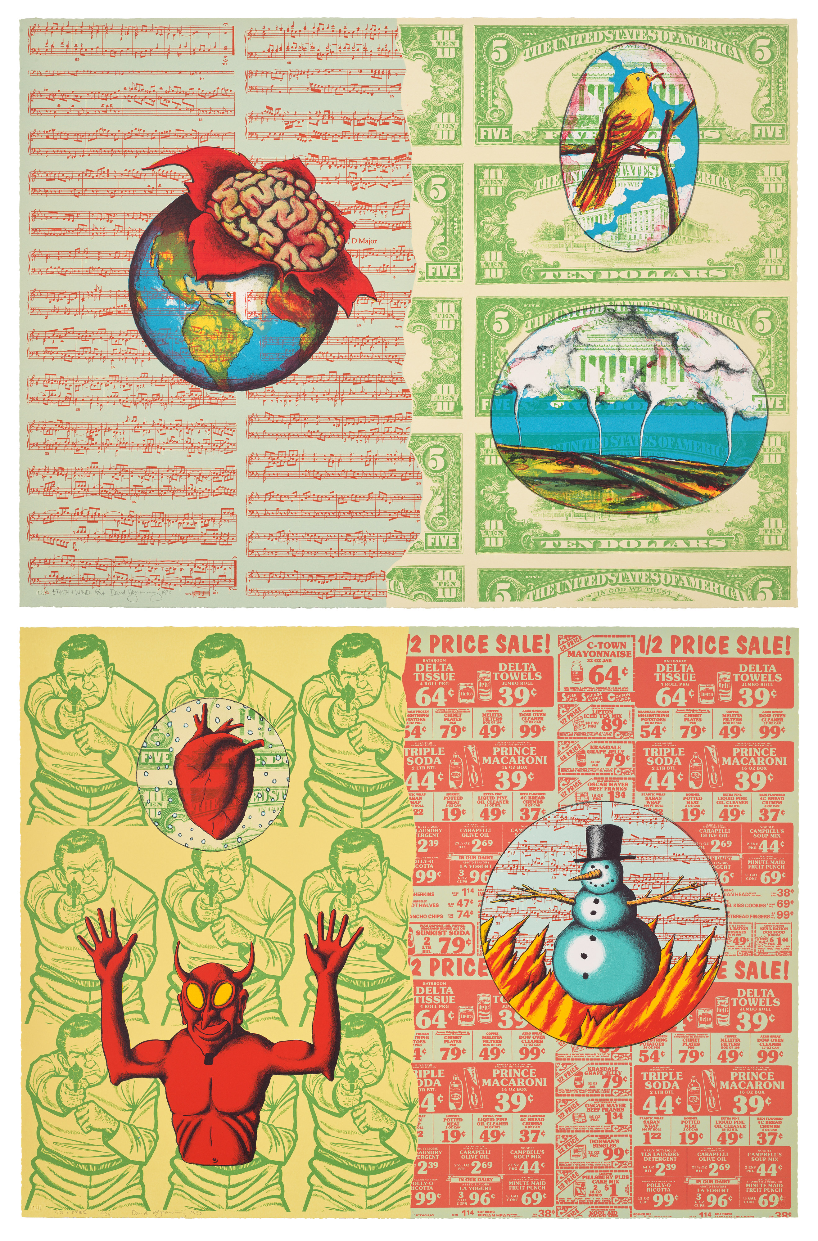 Lithograph diptych in colors, on two sheets of Rives BFK paper, the full sheets
