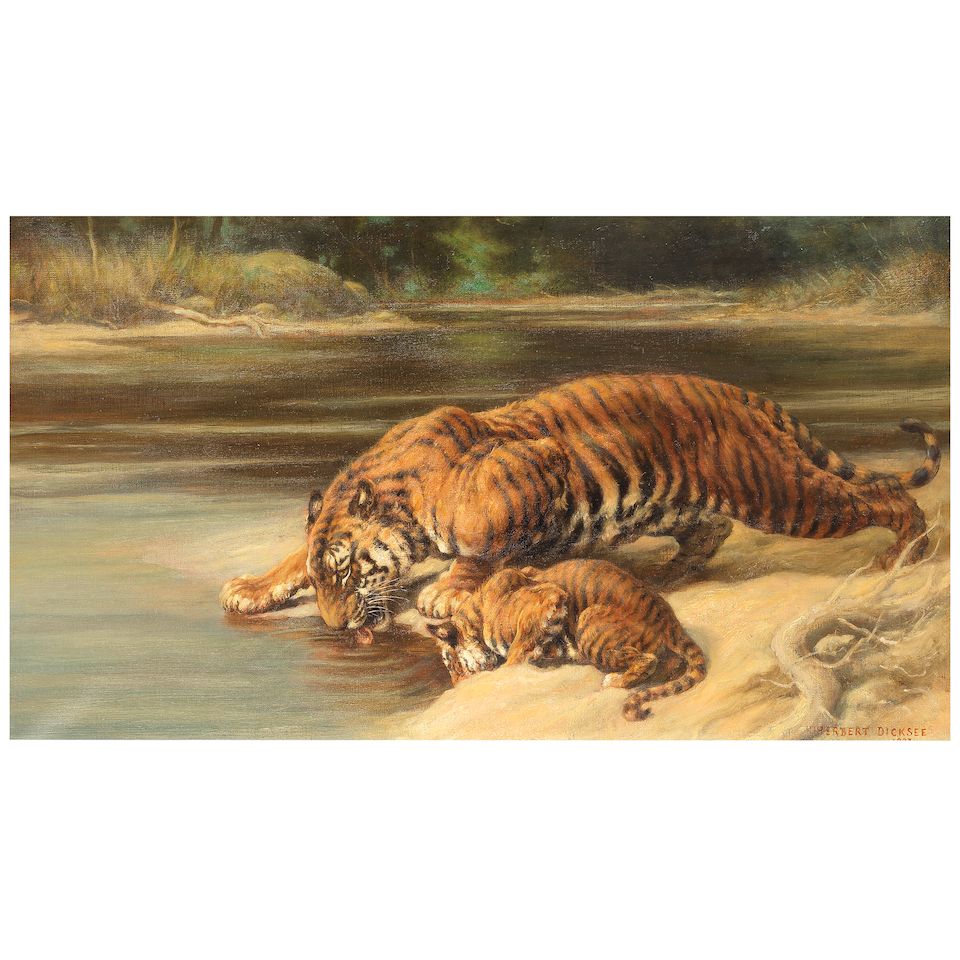 Tigers at the waters edge