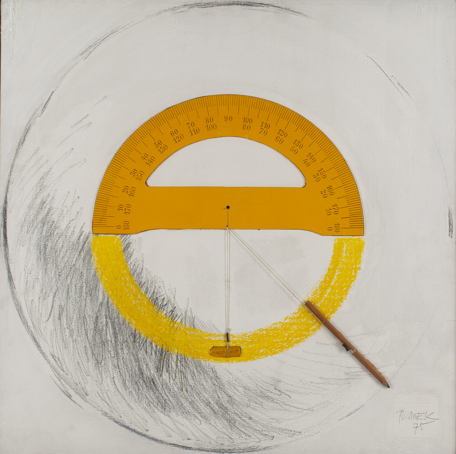 Drawing on Two Axes with a Square, made with pencil and chalk