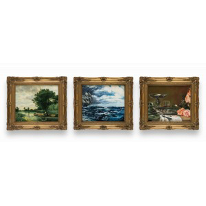 Acrylic on hempcloth, motor, battery with original frame, 3 works