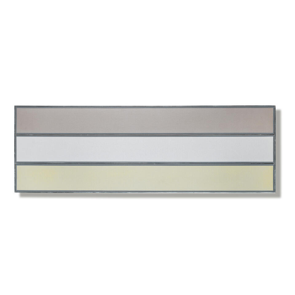 metallic acrylic on canvas and board with aluminium strips, in three parts