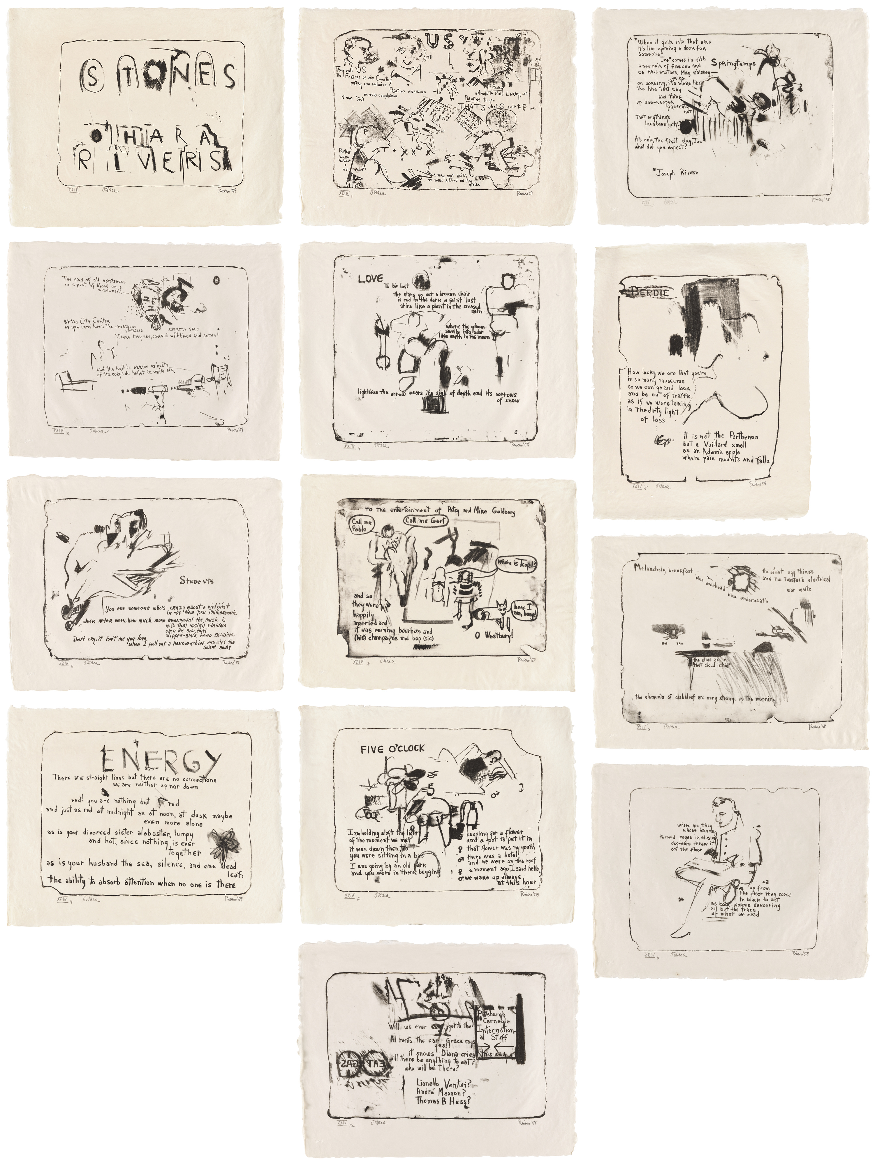 The complete set of 13 lithographs, including the title page, on pure linen rag paper, with full margins, poetry by Frank O'Hara, with accompanying colophon and original outer paper folder