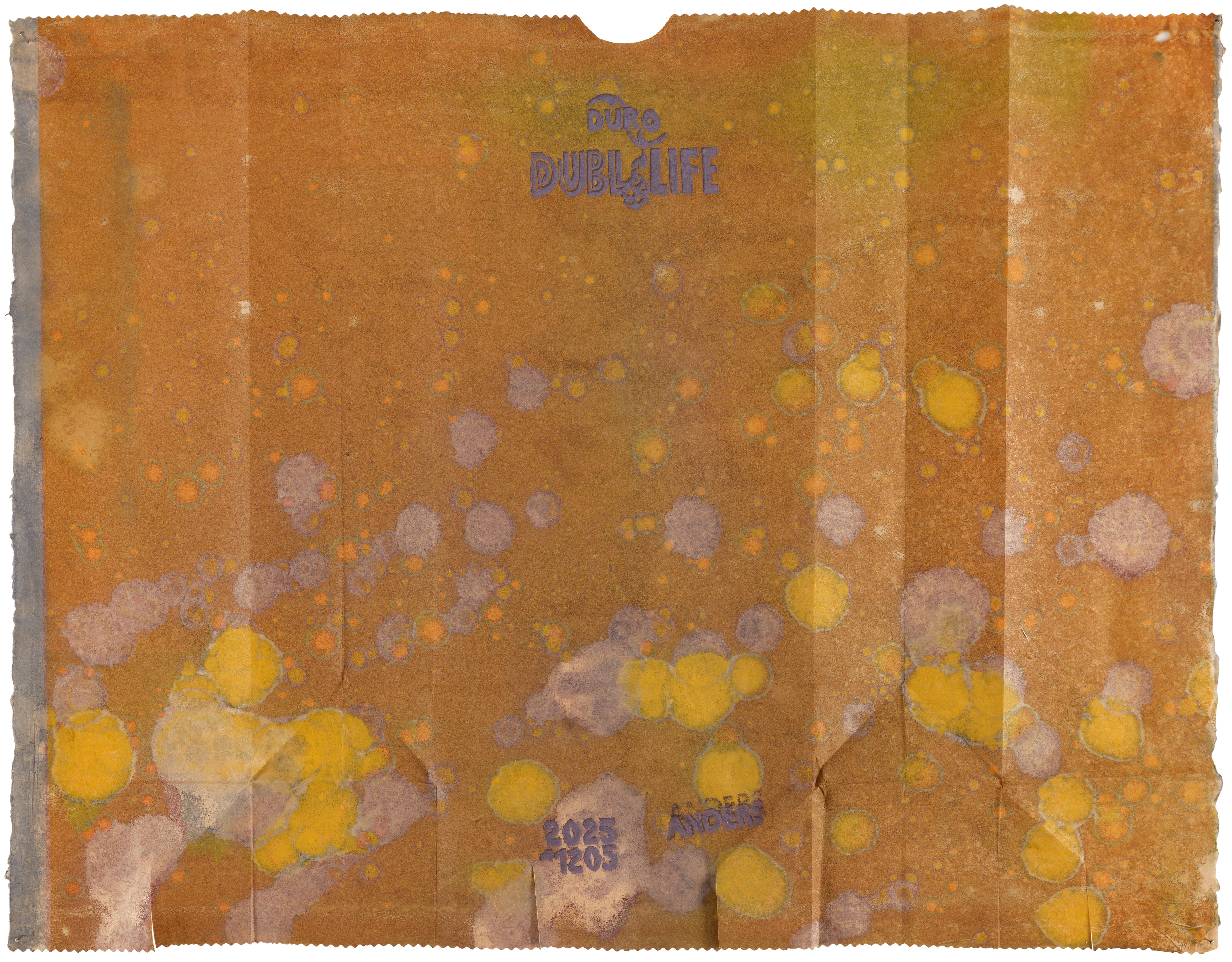 Unique viscosity monotype and relief print in colors, on Akatosashi paper, hand-cut and folded (as issued), the full sheet