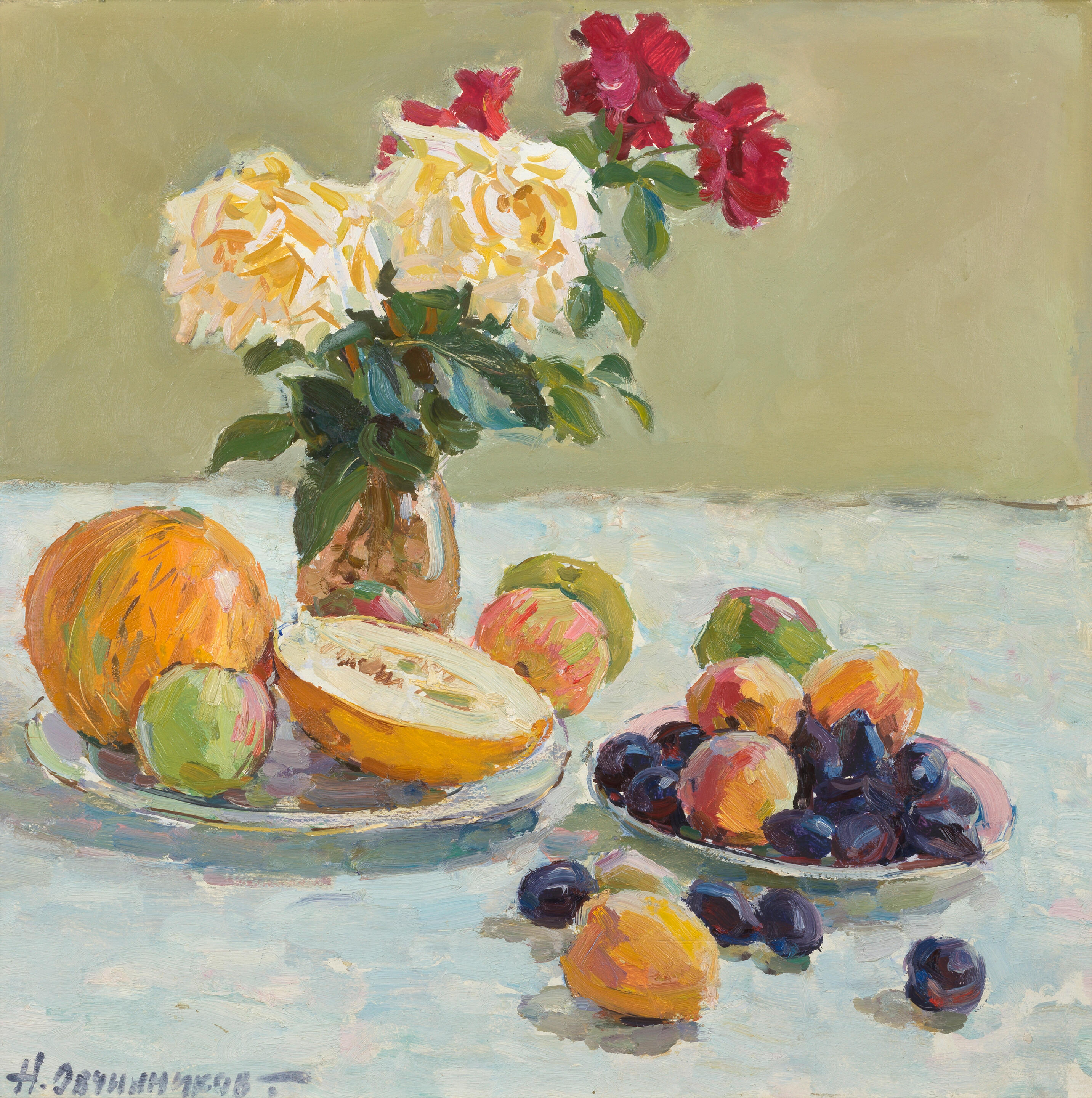 Roses and summer fruit
