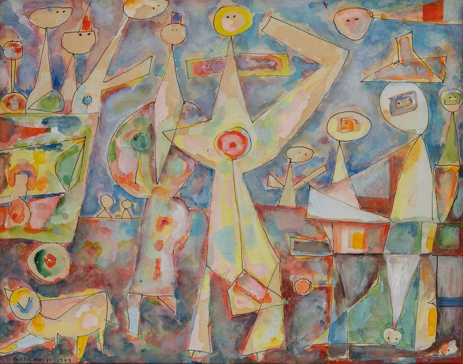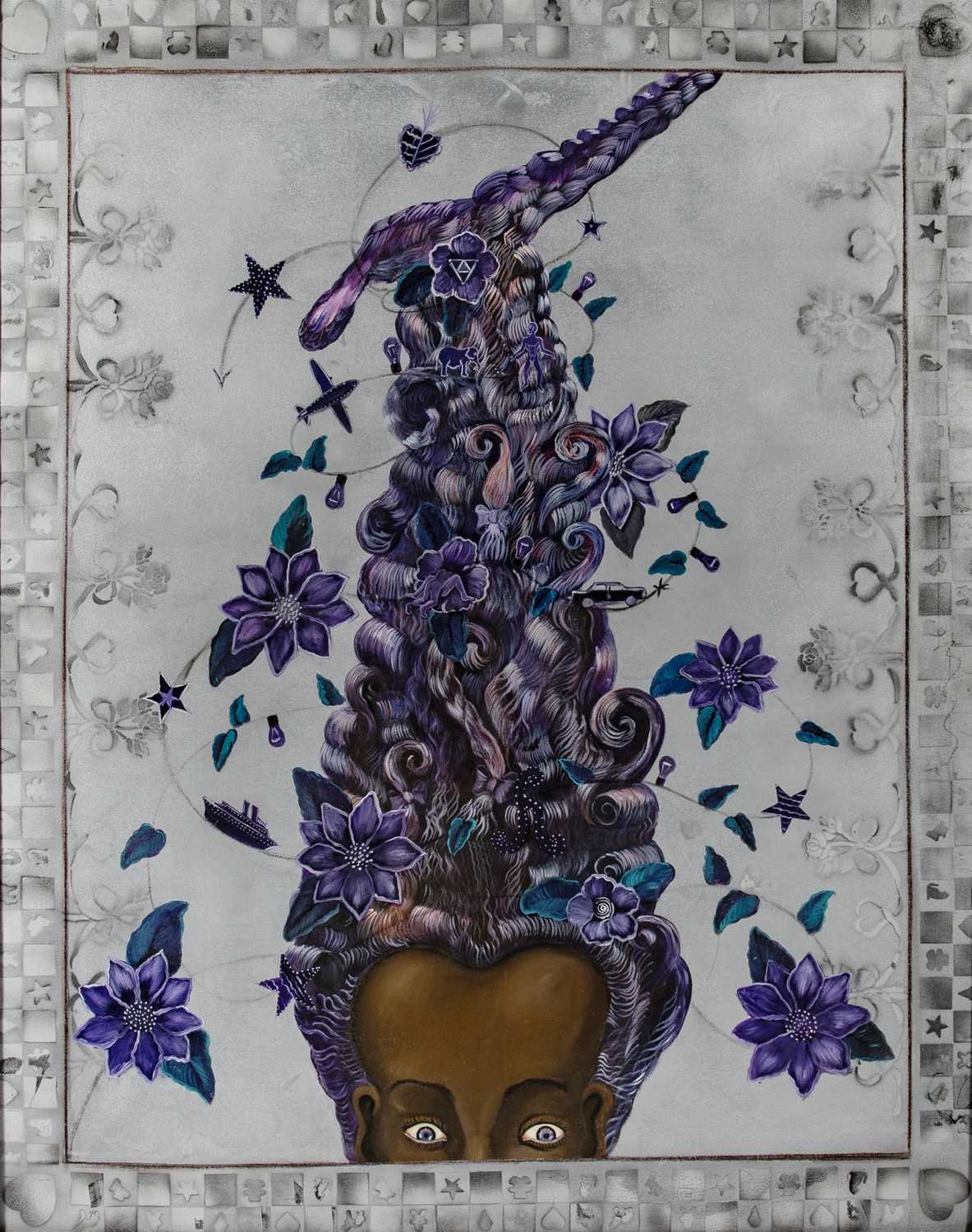 Acrylic, charcoal, and Prismacolor on canvas