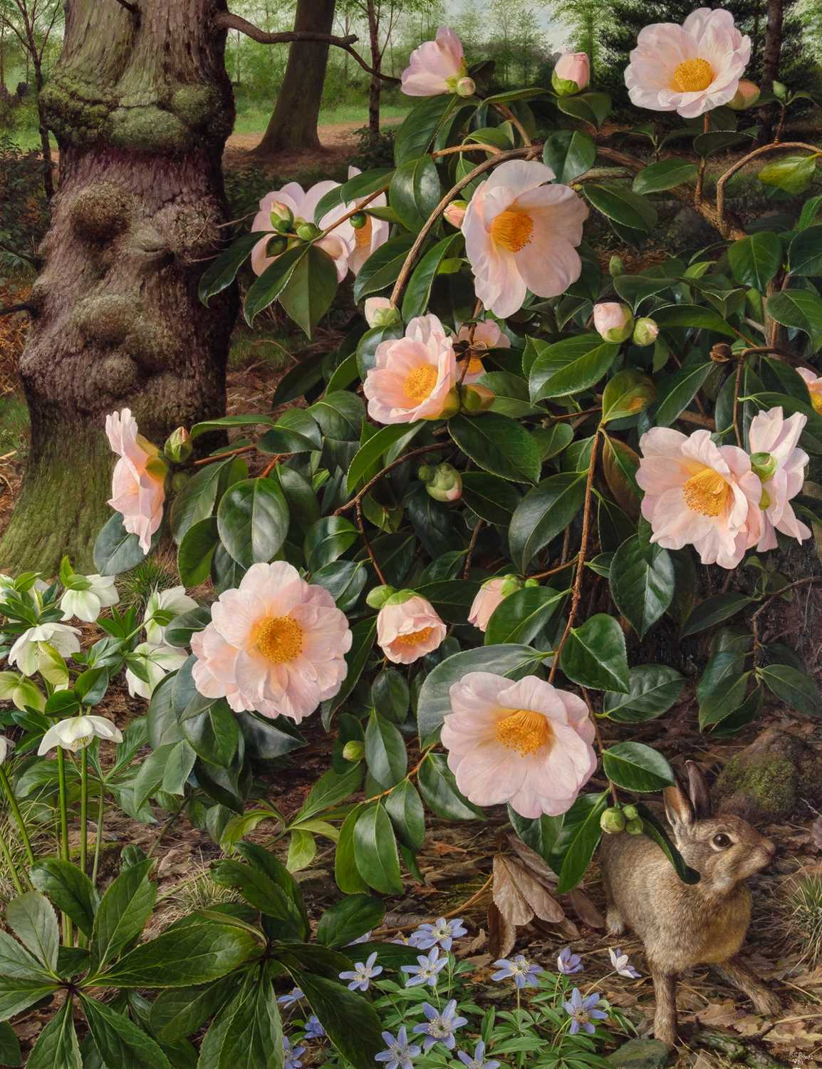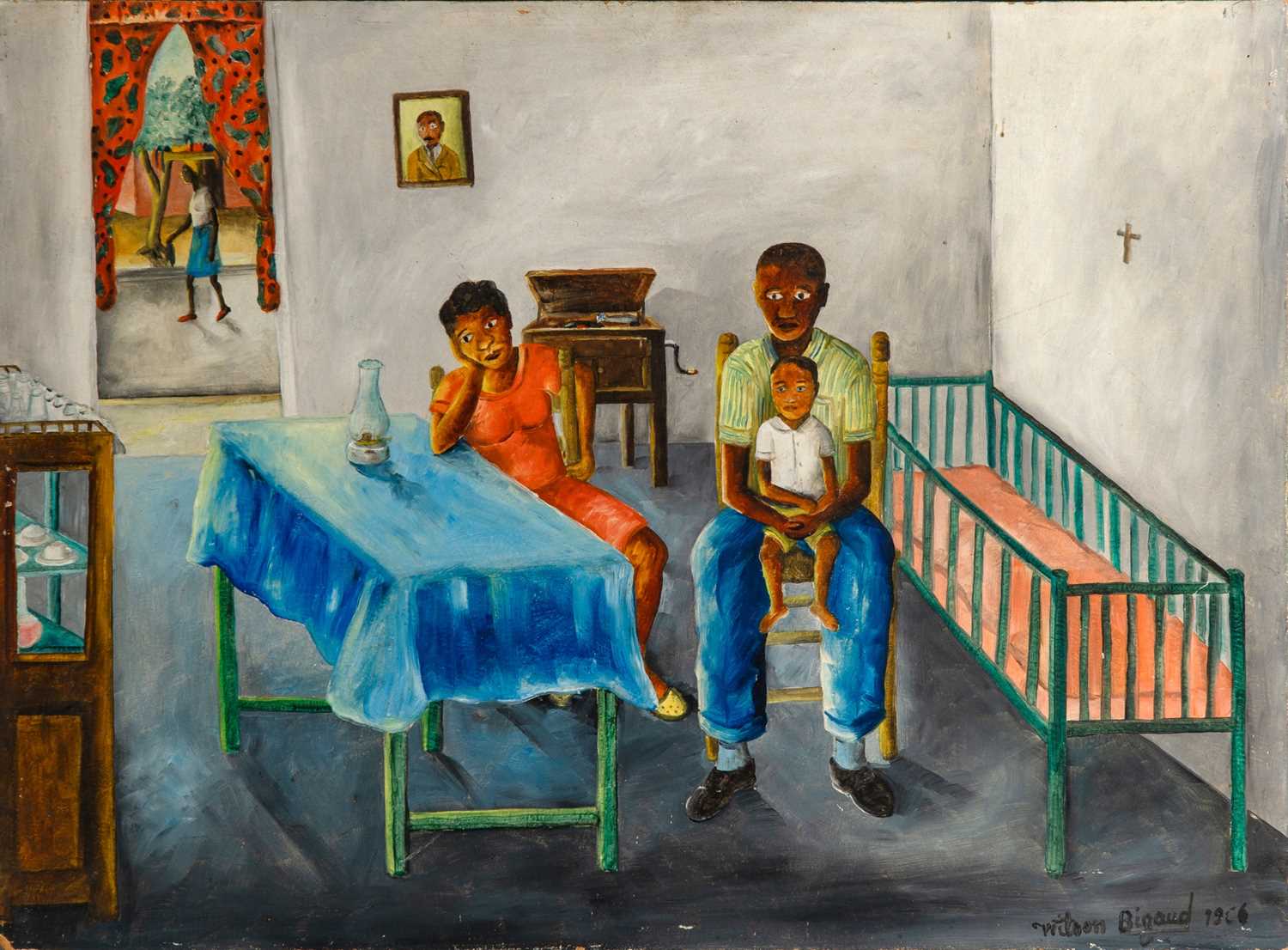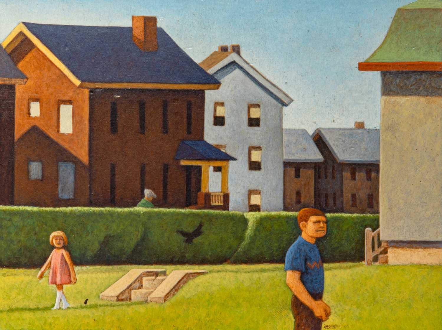 Oil on photomechanical print on paper laid to card