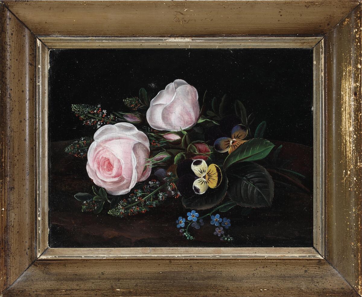 Pink roses and pansies on a table
