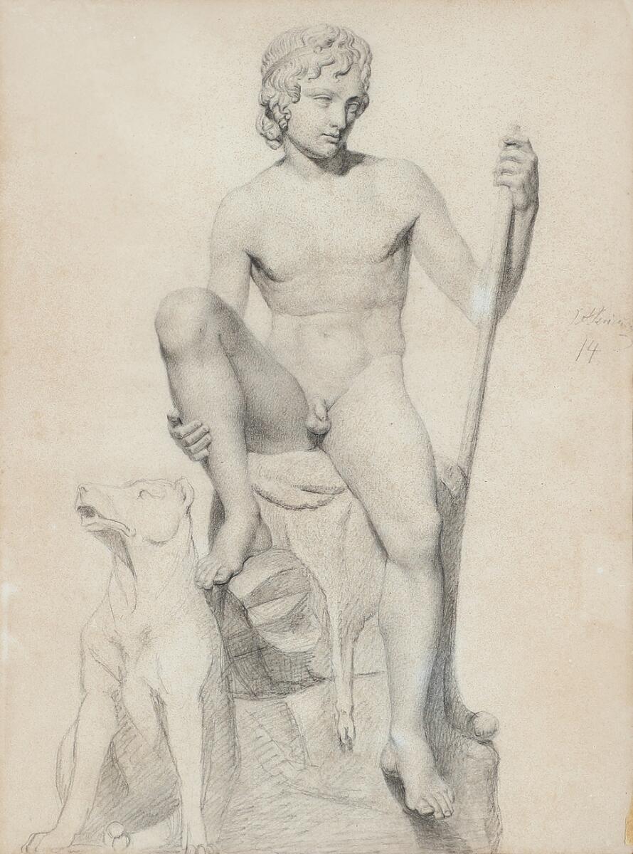 Academy drawing after the sculpture “Hyrdedreng” by Bertel Thorvaldsen