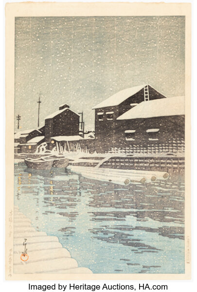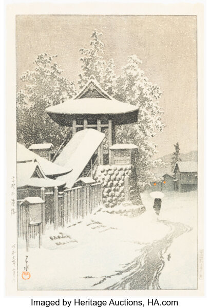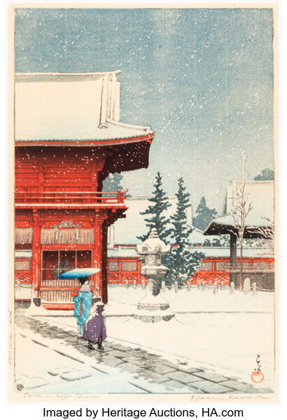 Kawase Hasui, Snow at Nezu-Gongen Shrine, from the series Collection of Sce...