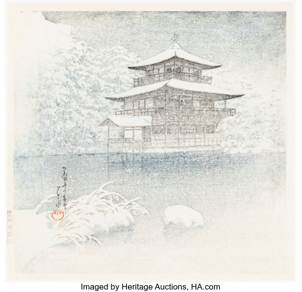 Evening Snow at Kinkakuji (Kinkaku-ji no bosetsu), from the series Twelve V...