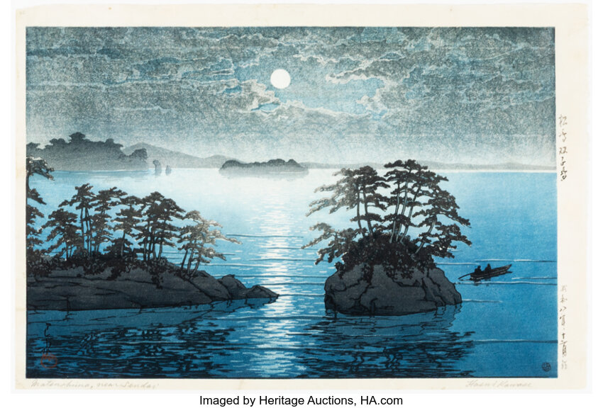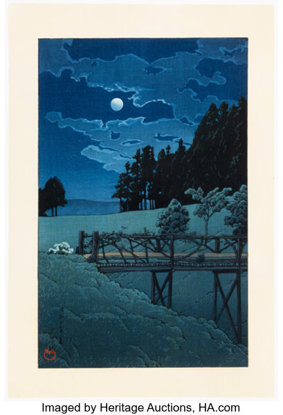 Kawase Hasui, Moon over Kiyosumi Garden, 1938