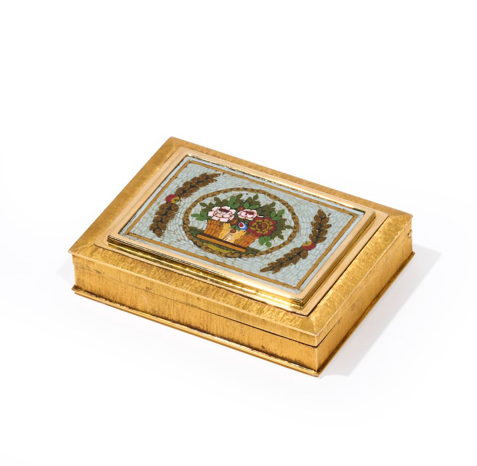 Tabatière en or 585°/°° ornée de micromosaïque, travail chinois, début du XXe siè...