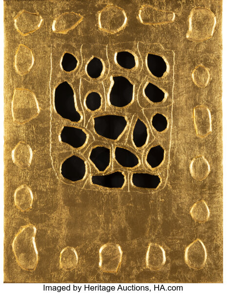 Gold leaf and mixed media on paper