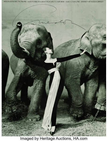 Dovima with Elephants, Evening Dress by Dior, Cirque d’Hiver, Paris Exhib...