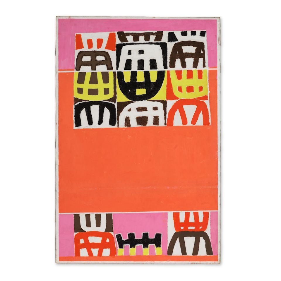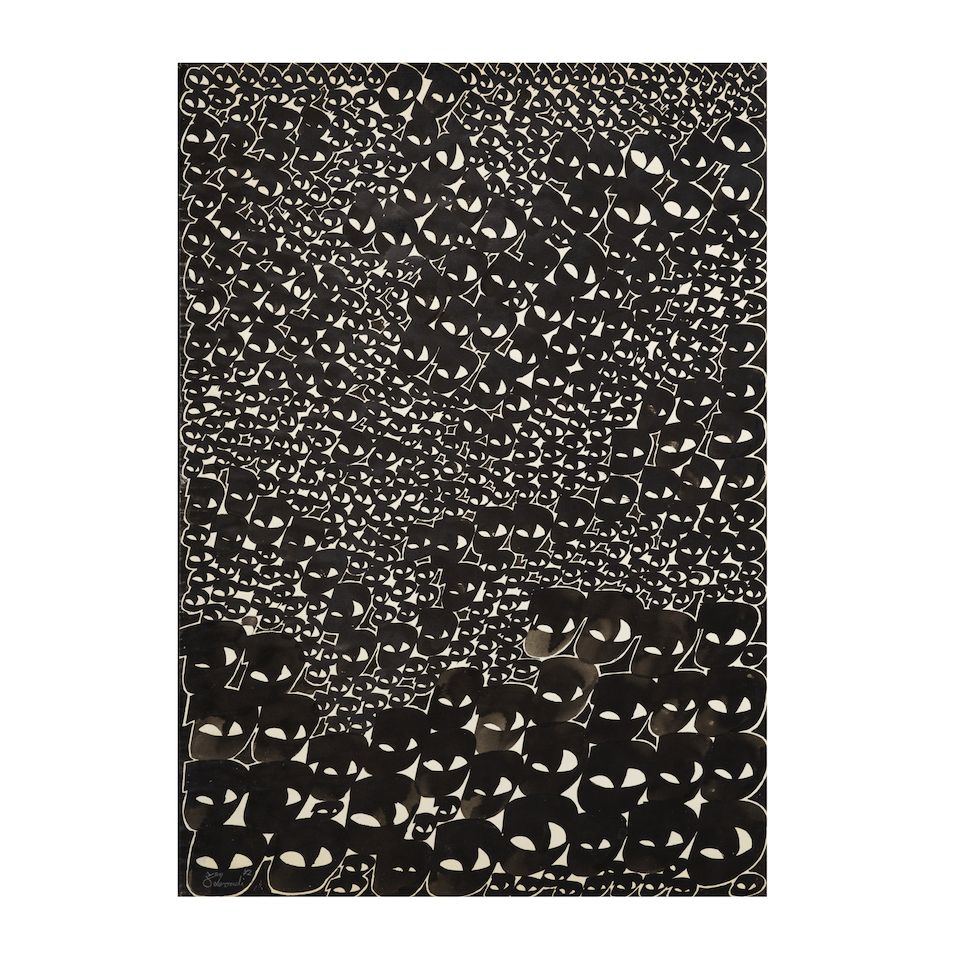 enamel paint and India ink on Japanese paper laid on masonit...