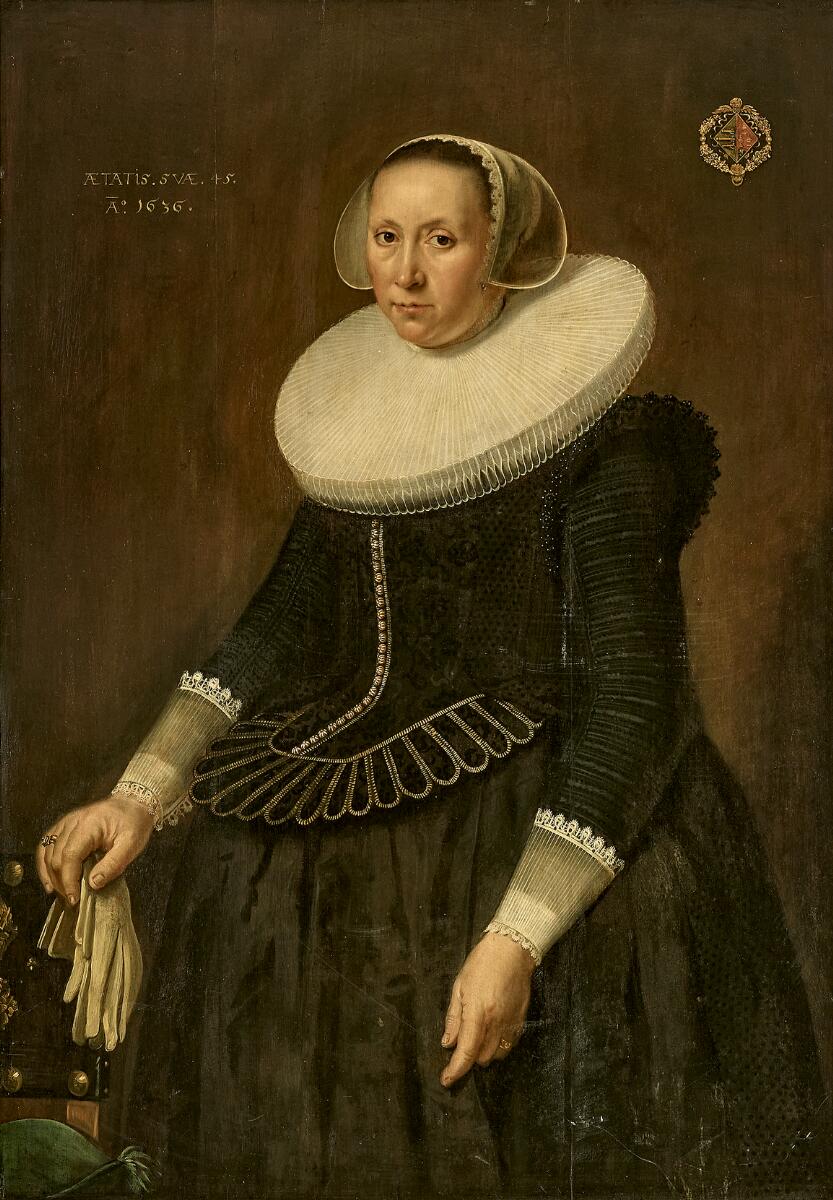 Portrait of a lady, three quarter length, wearing a ruff and a black dress