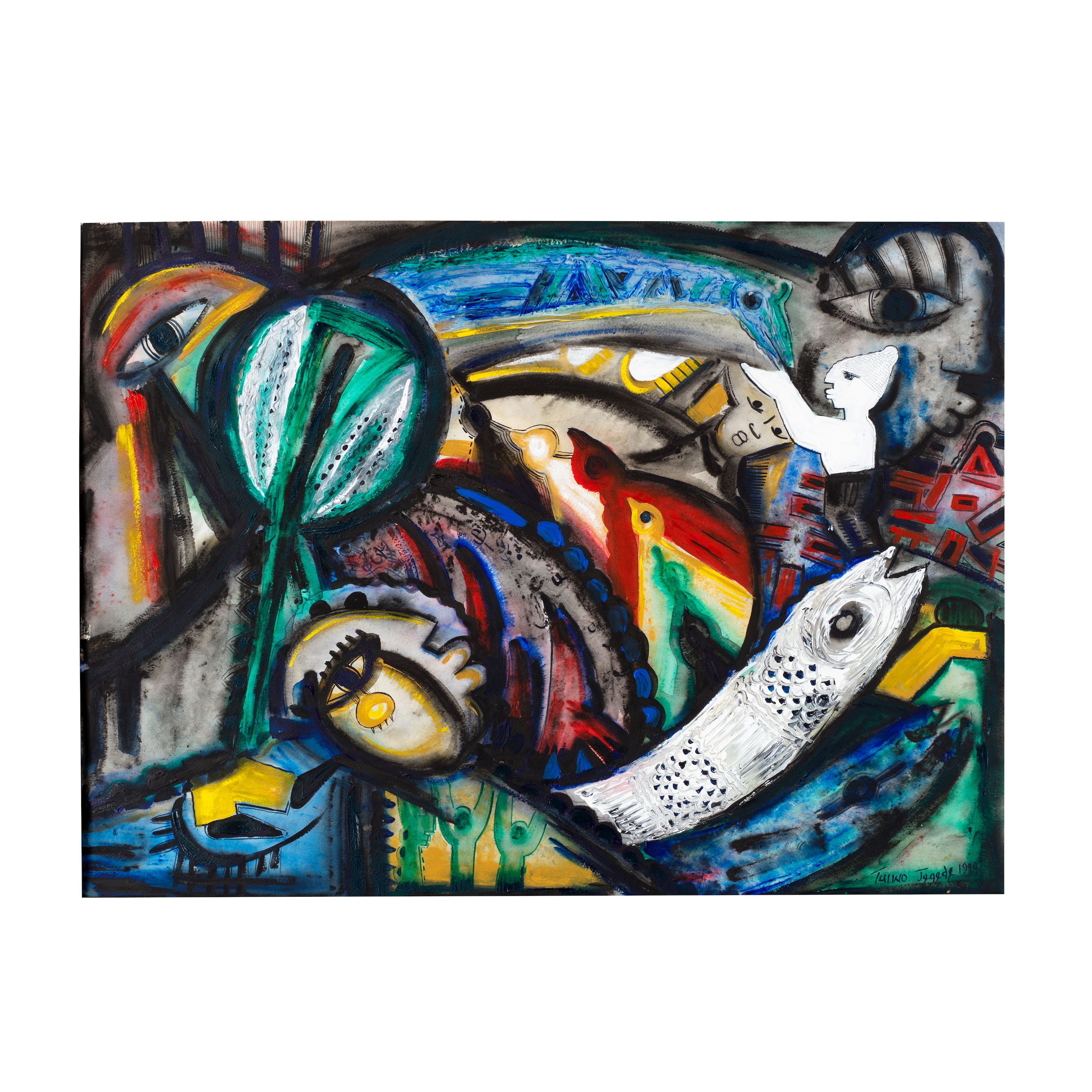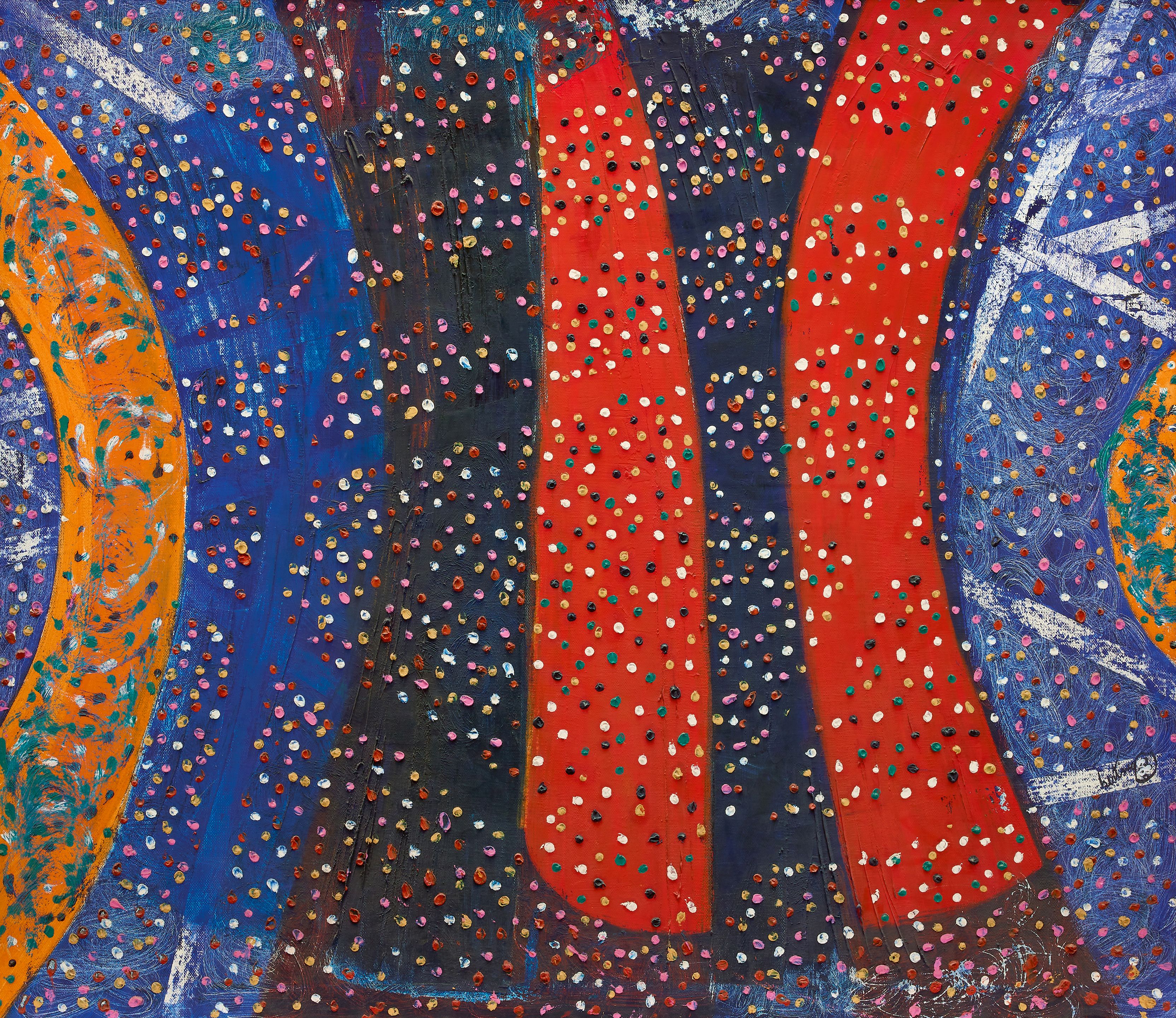 bears a stamp 'Munyaradzi Mazarire "Gambling in Kind" painte...