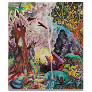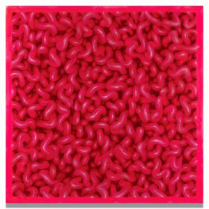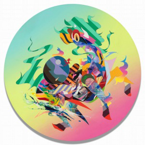 Airbrush and latex paint on canvas mounted on aluminum stret...