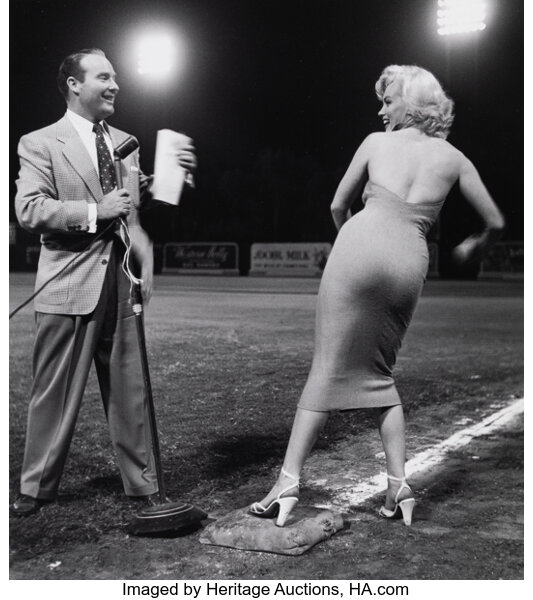 Marilyn Monroe and Ralph Edwards at the Hollywood Entertainers Baseball Gam...