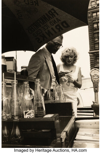 Marilyn Monroe and Arthur Miller in New York City (Marilyn Eating a Hot Dog...