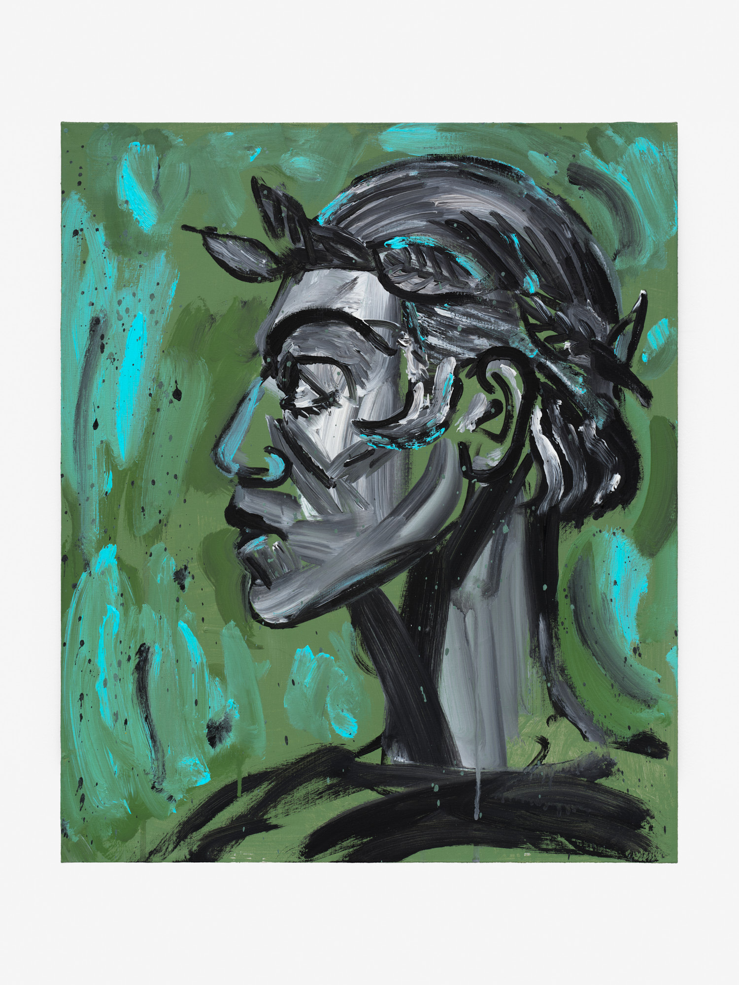 Bronze, white-polychromed and aluminium on marble base