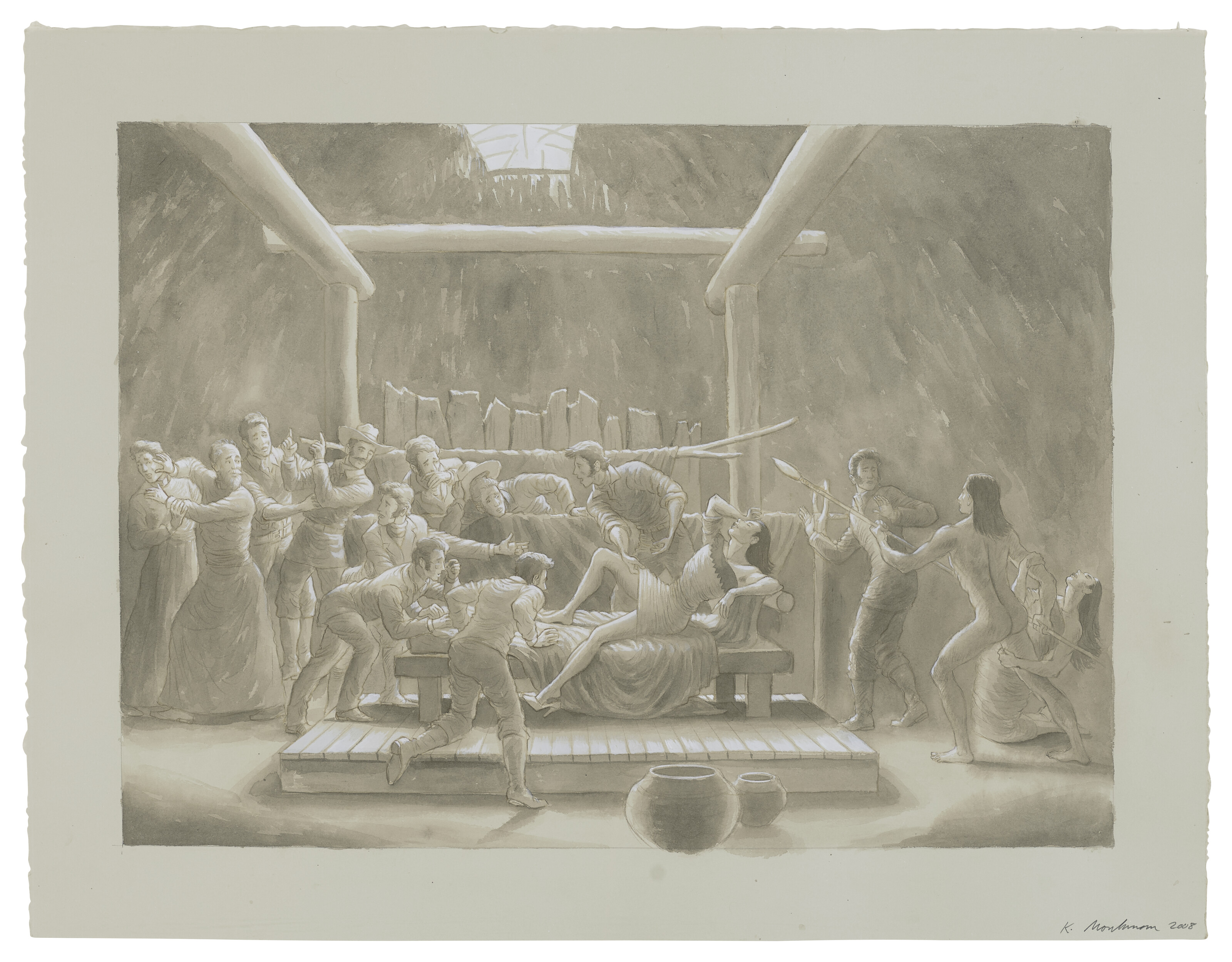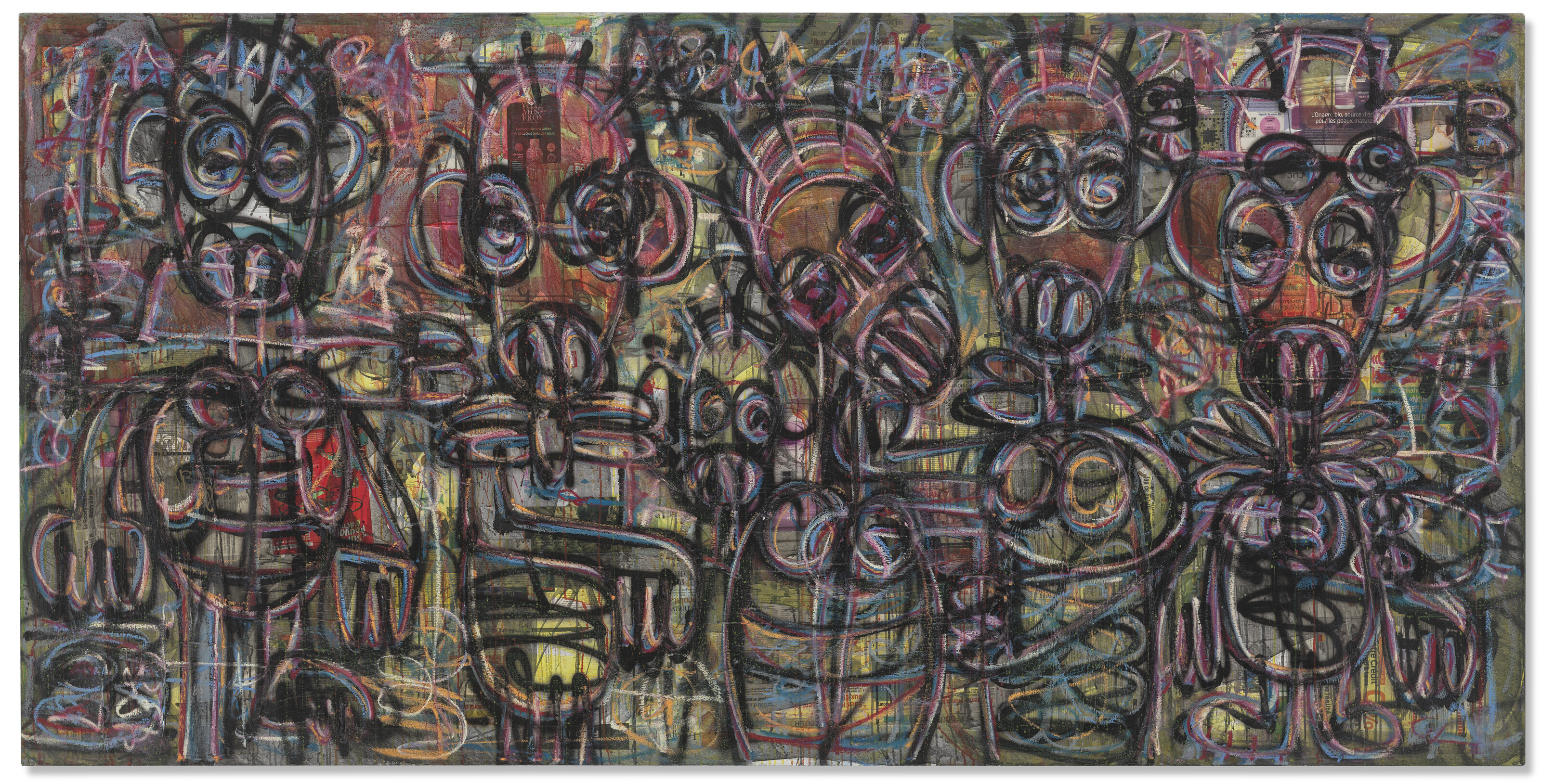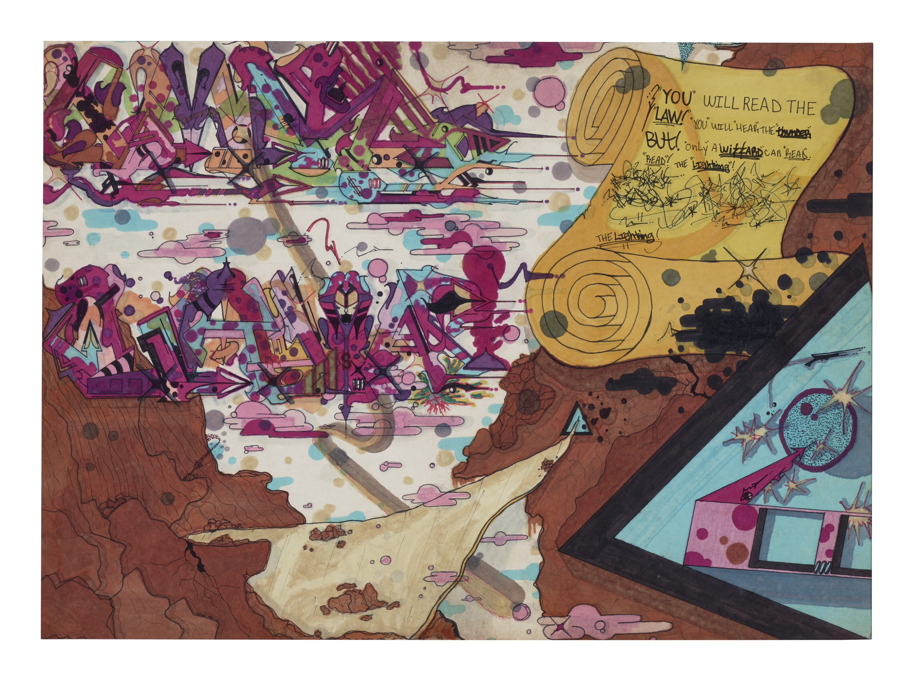 felt-tip pen, acrylic, glitter and archival glue on paper