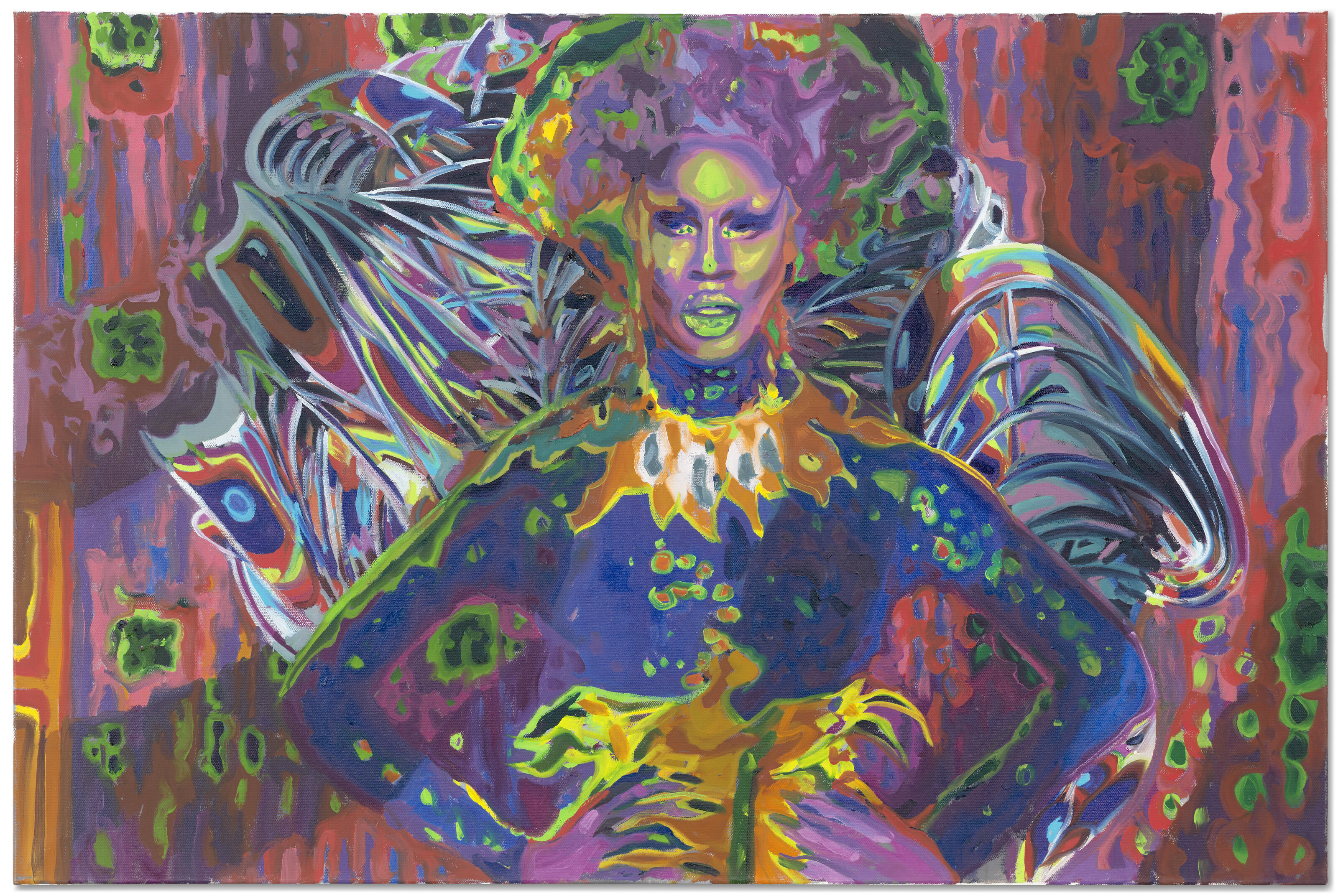magnetic VHS coating, acrylic glue and acrylic on canvas