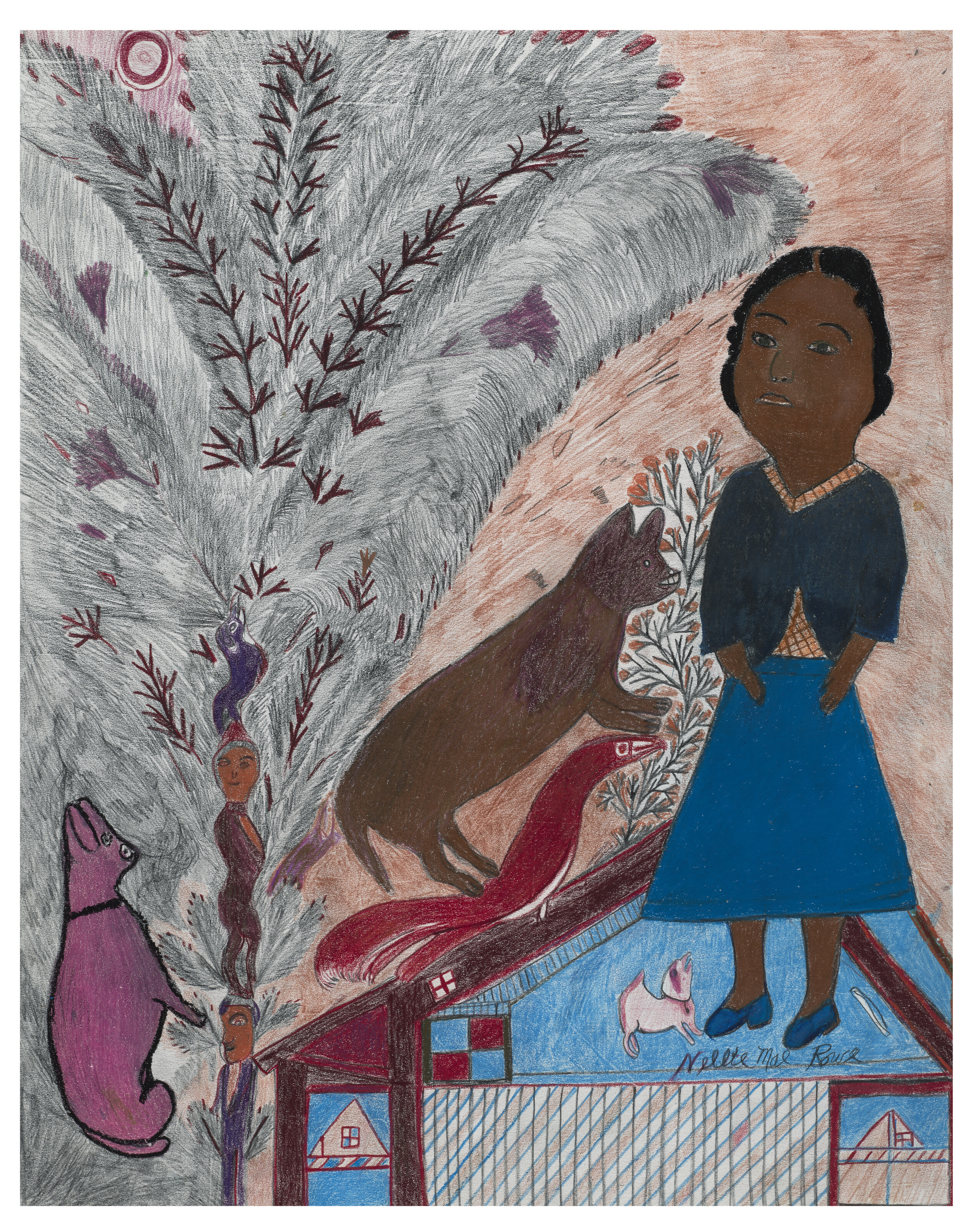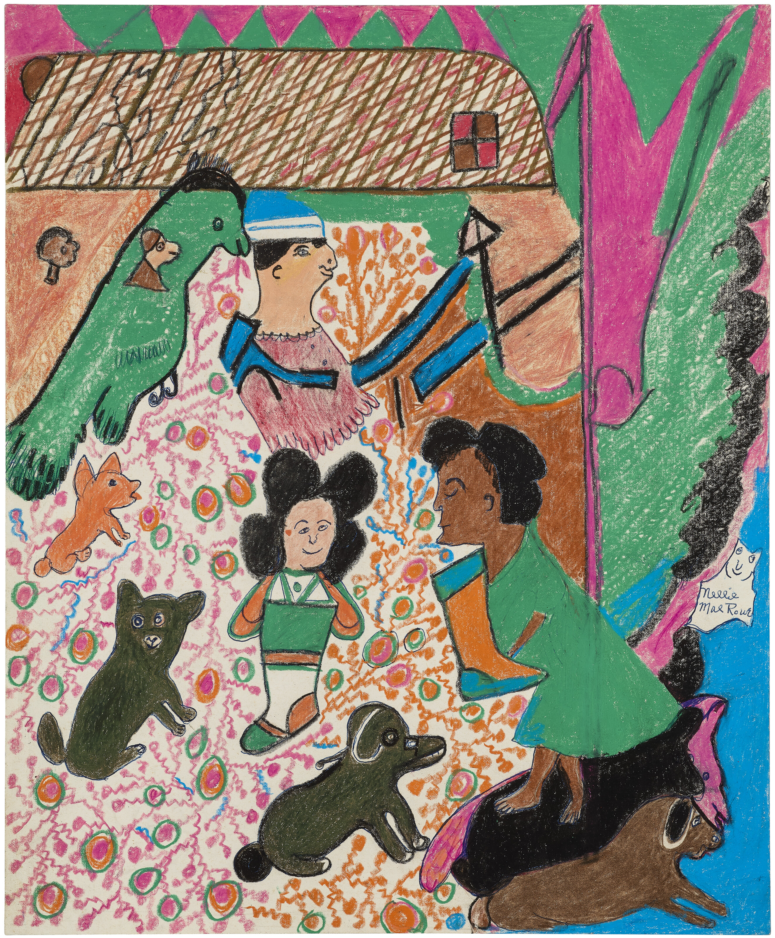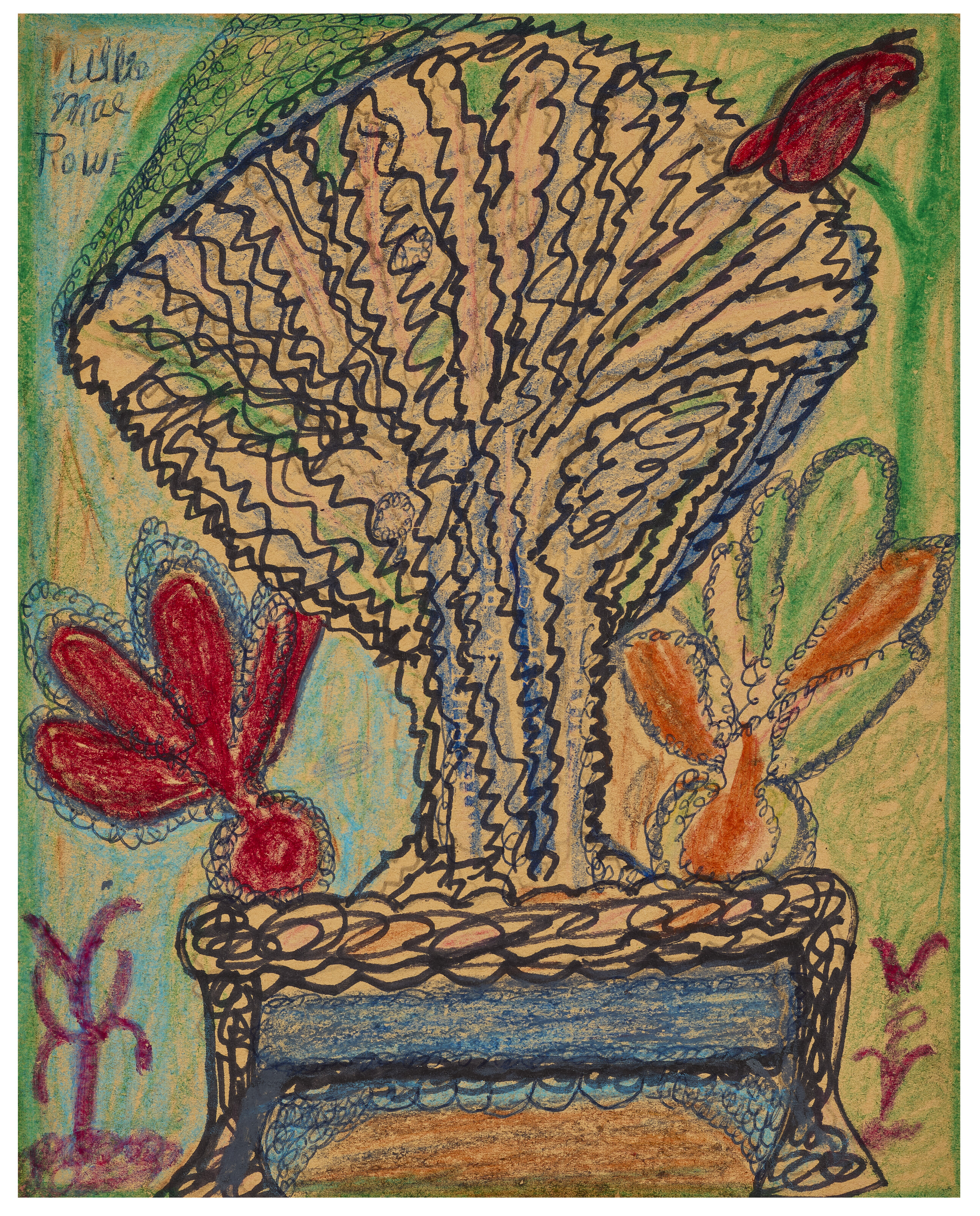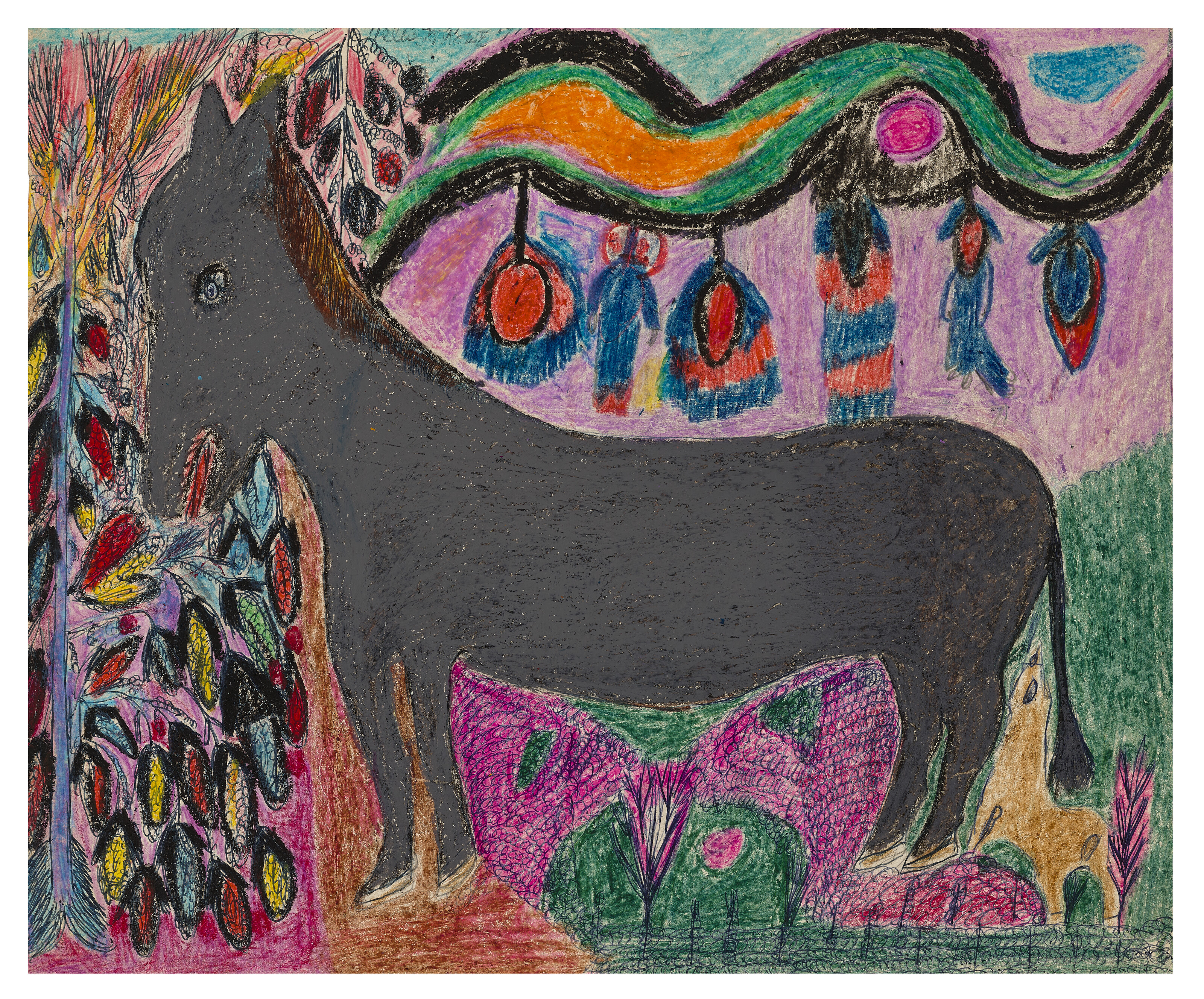 crayon, ink and felt-tip on paperboard