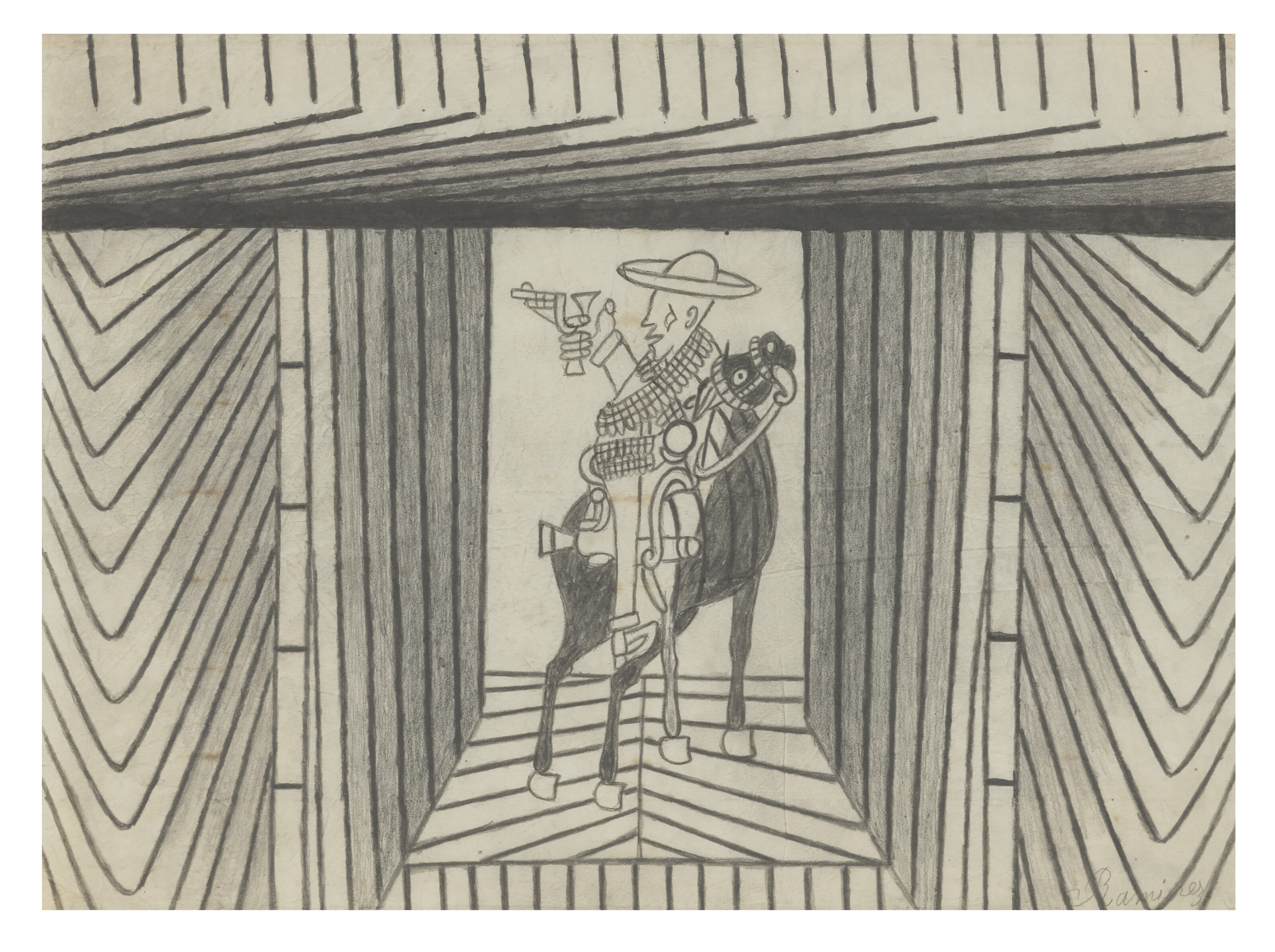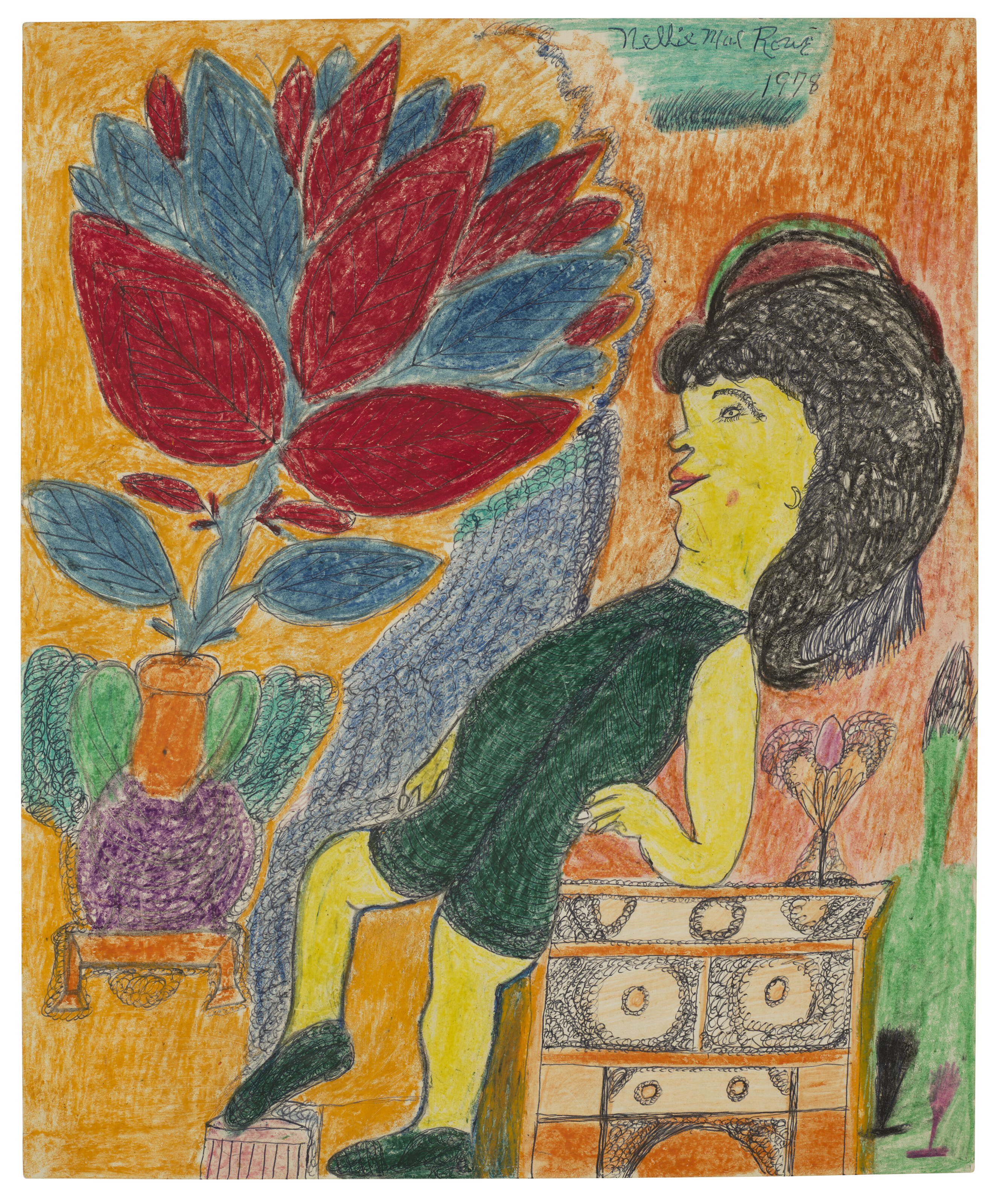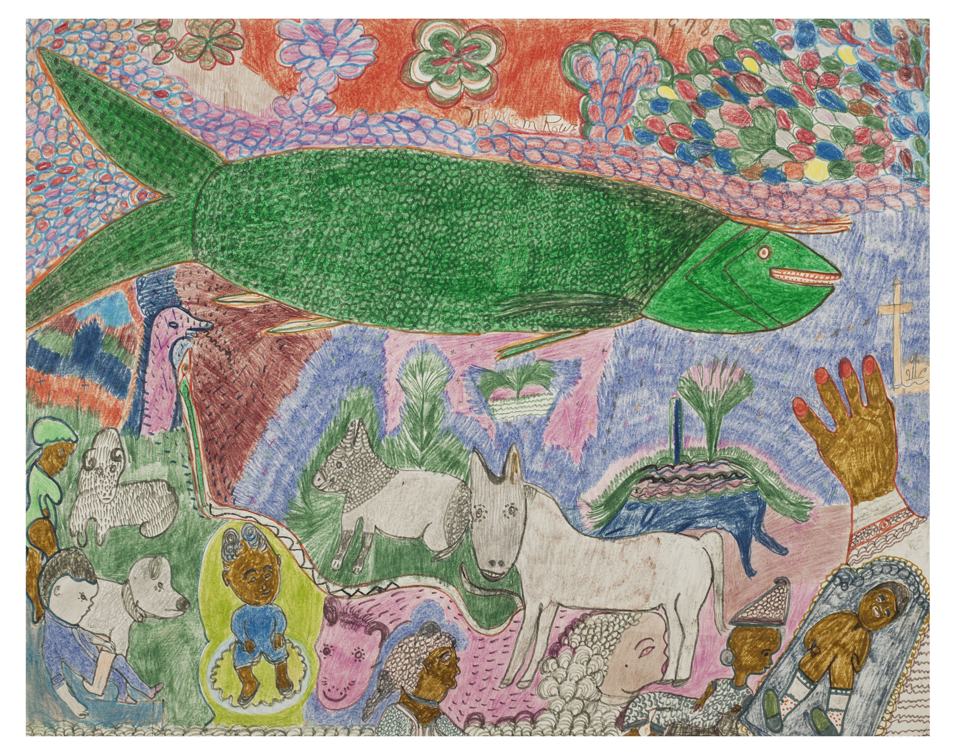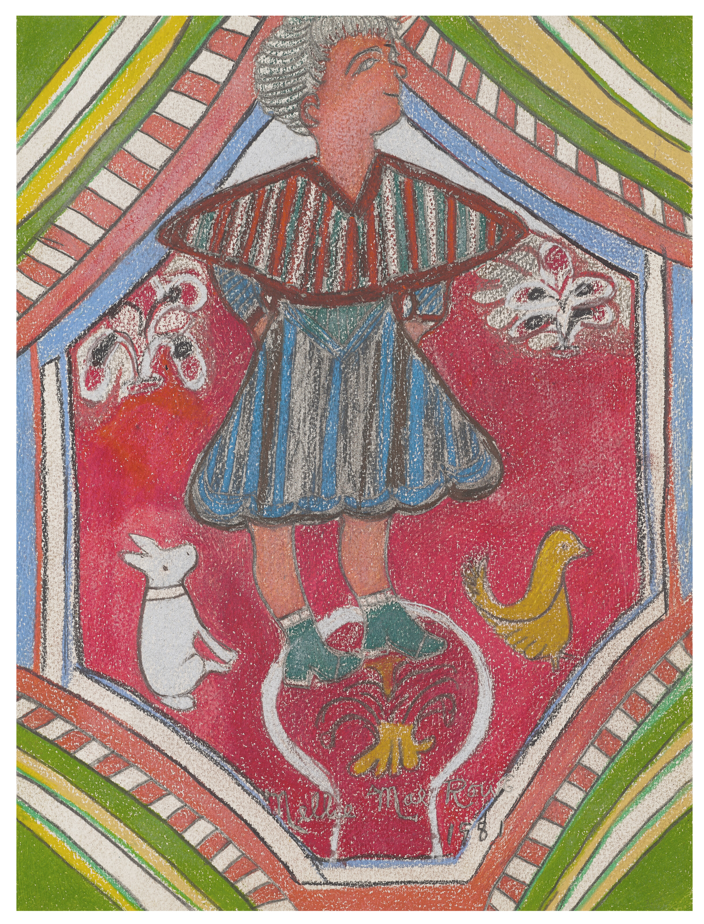 crayon, ink and felt-tip on paperboard