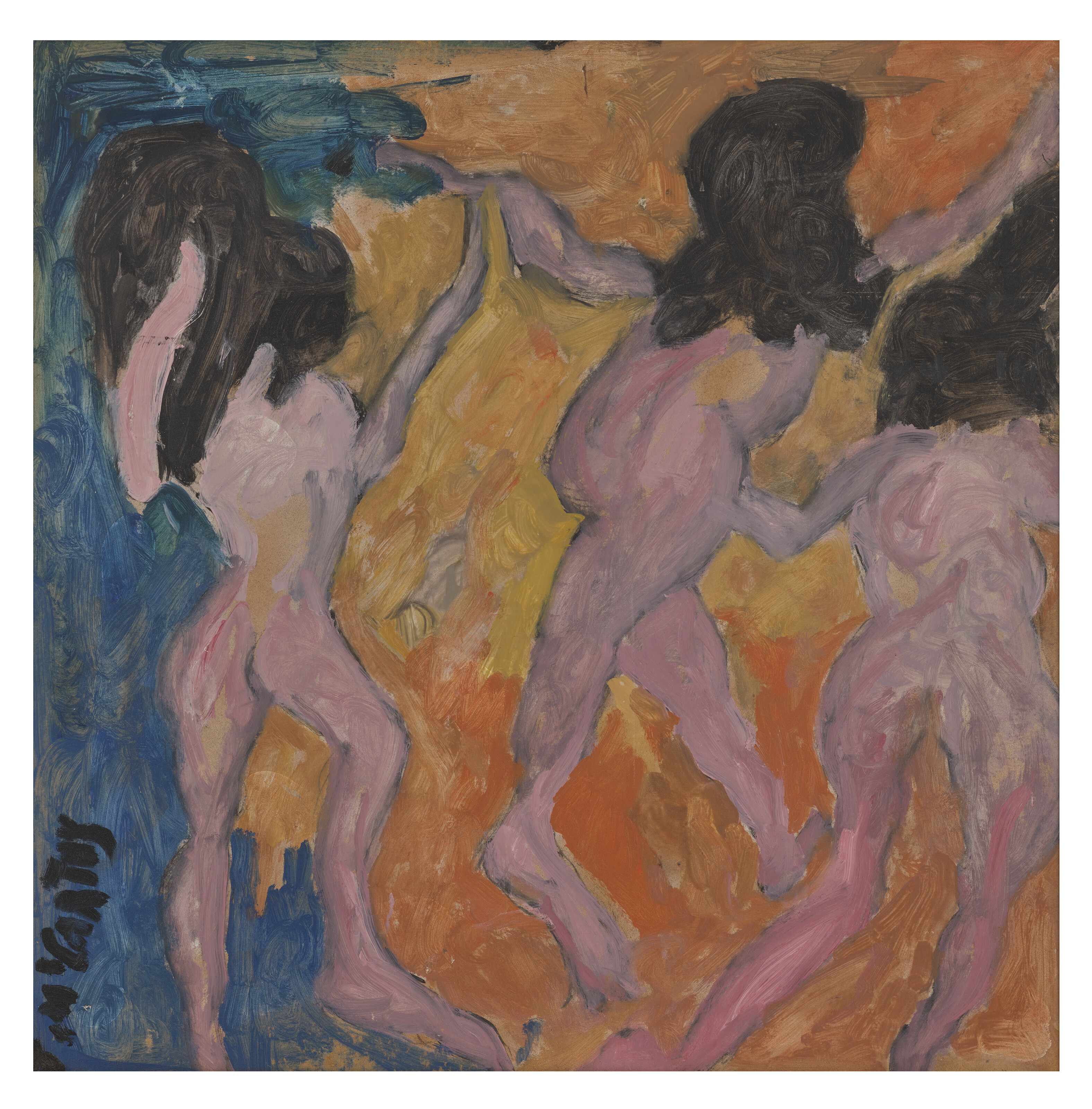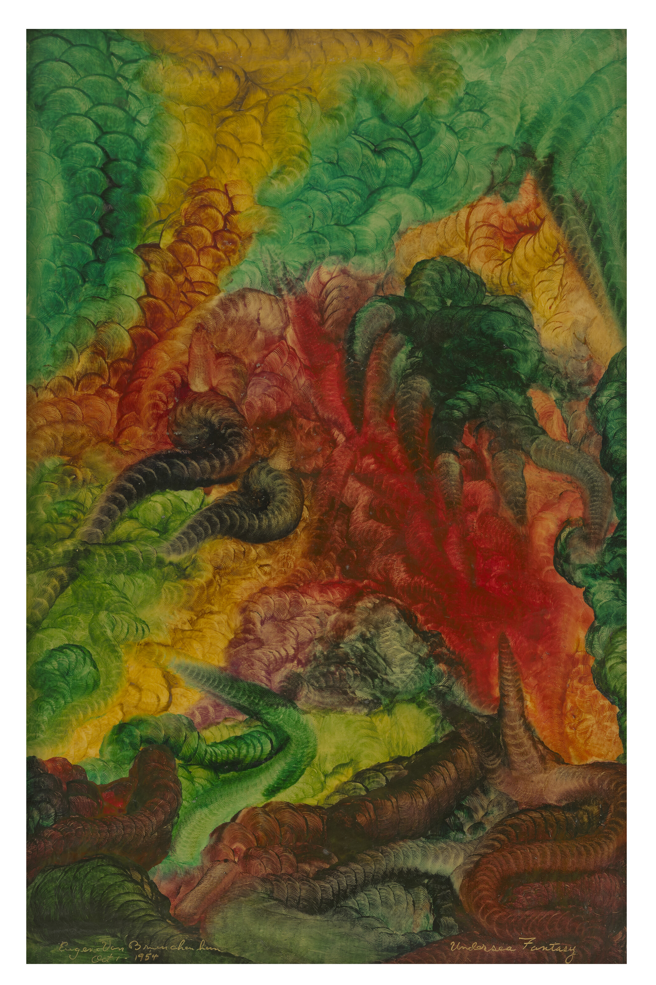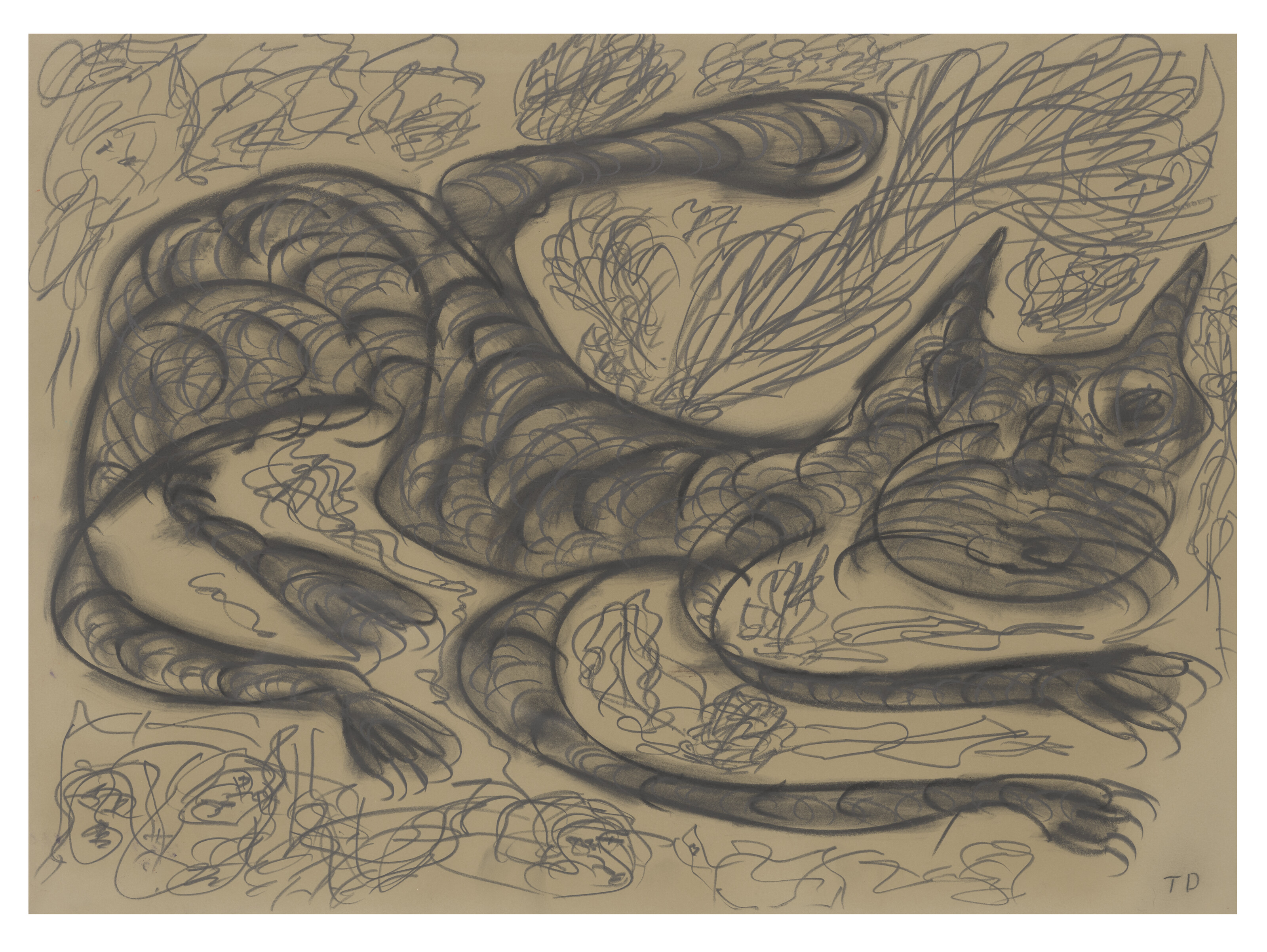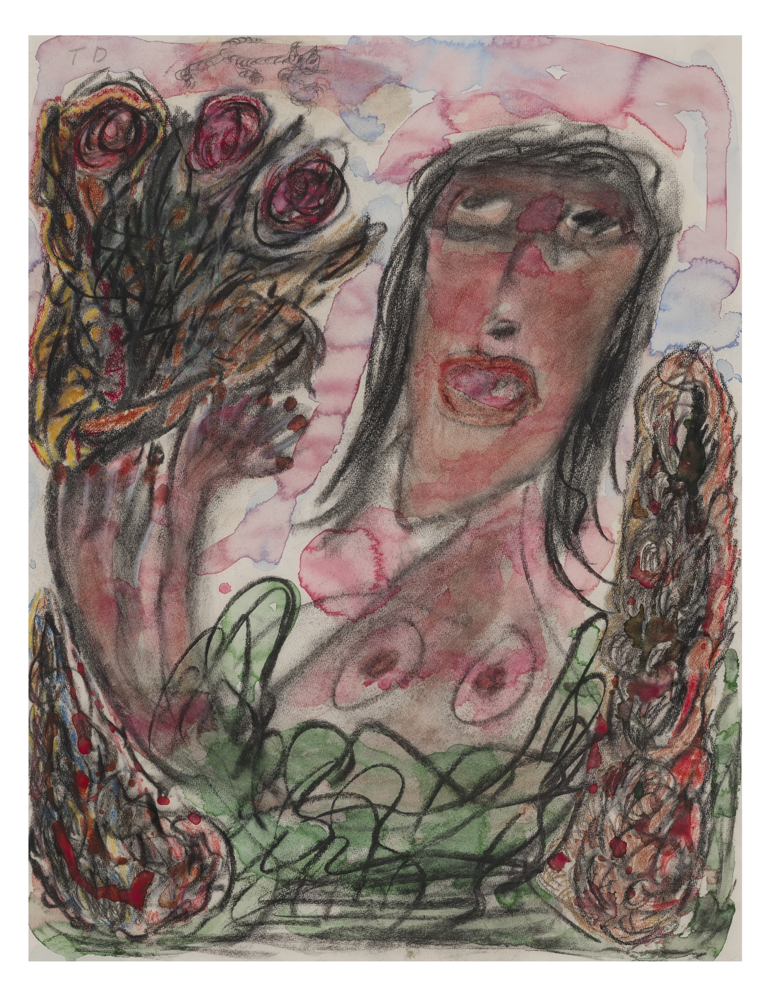 oil, pastel, chalk and graphite on paper, in 2 parts, mounte...