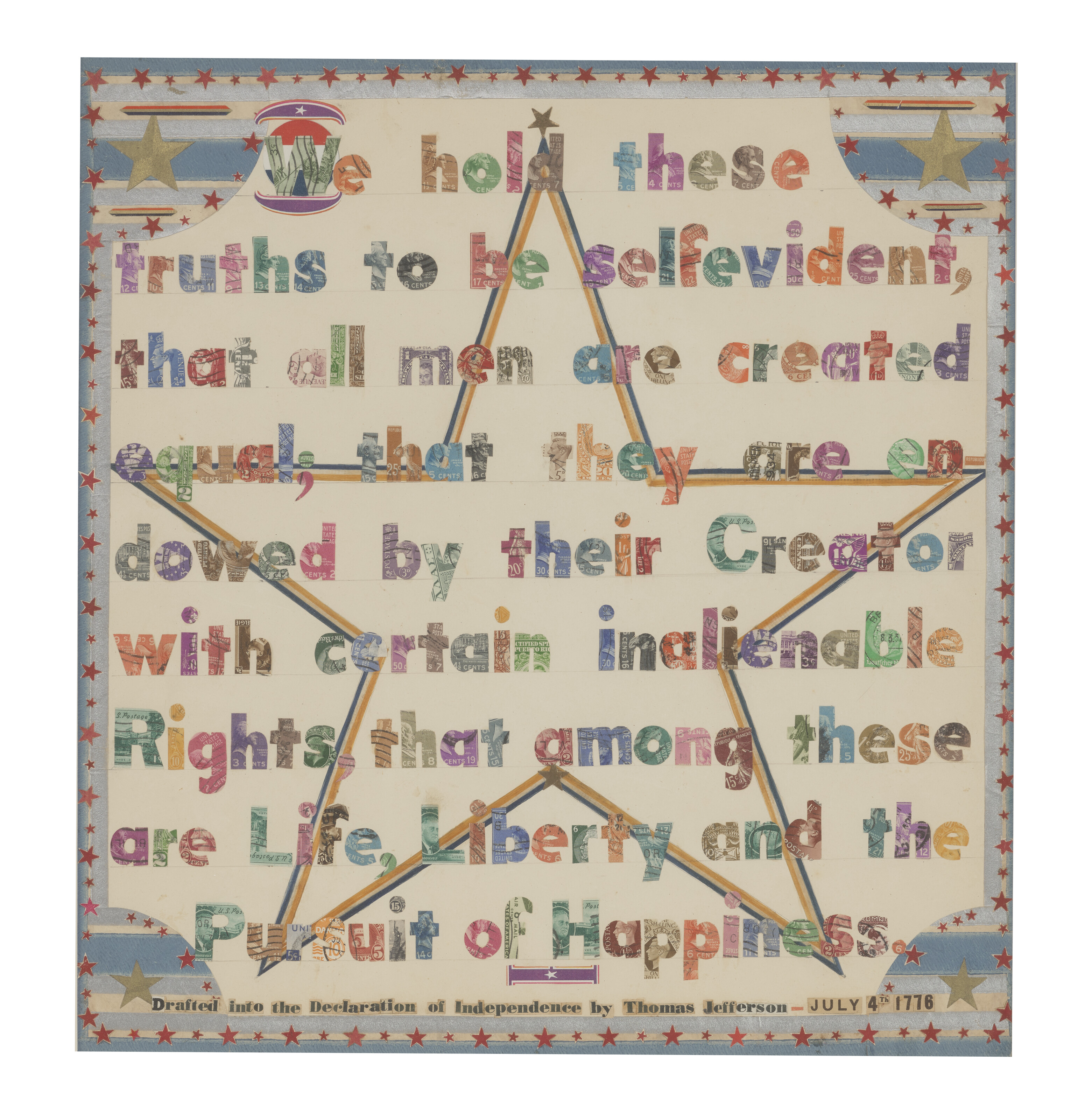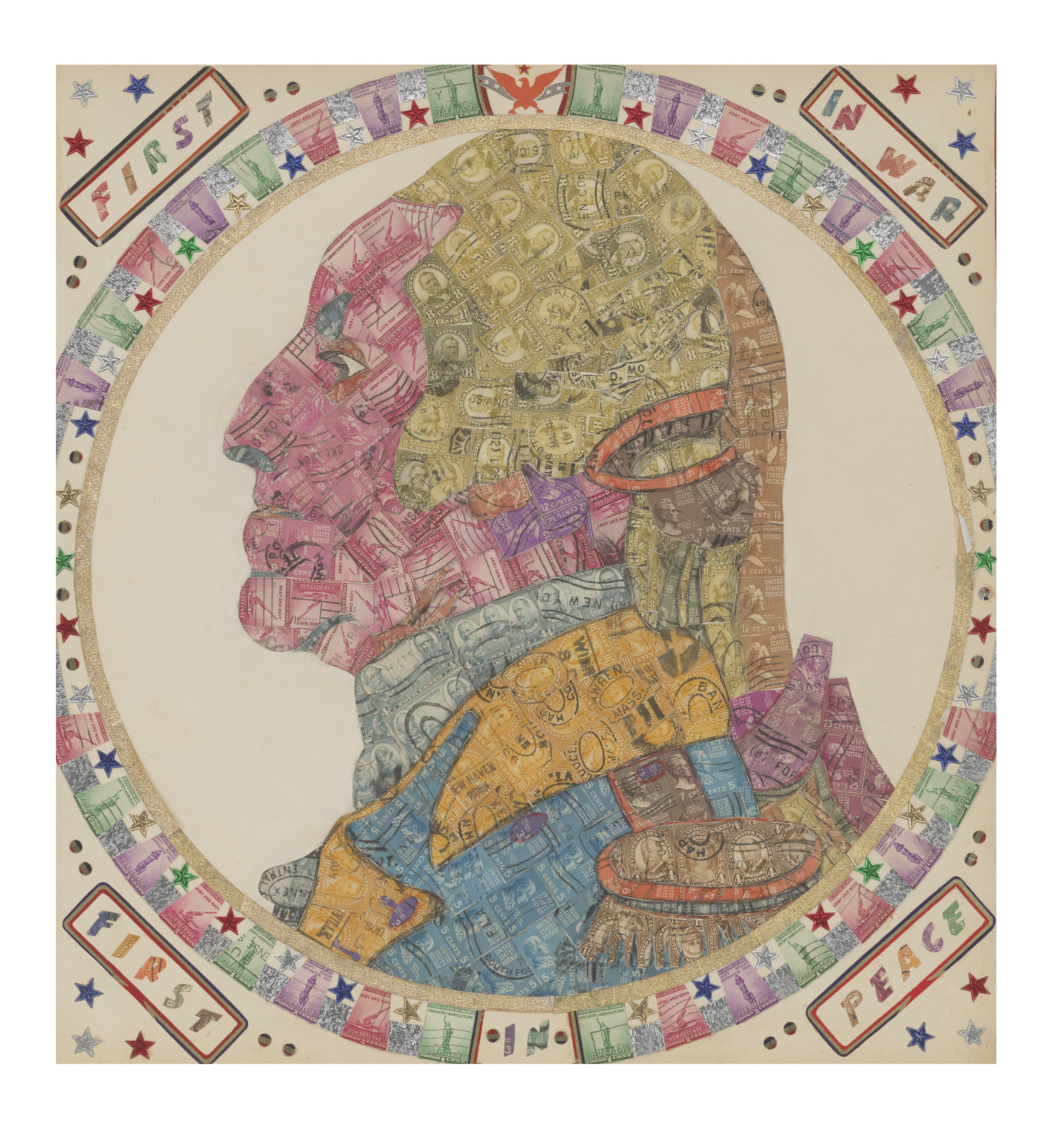 mixed media including card, stone, wood, paint, ink and adhe...