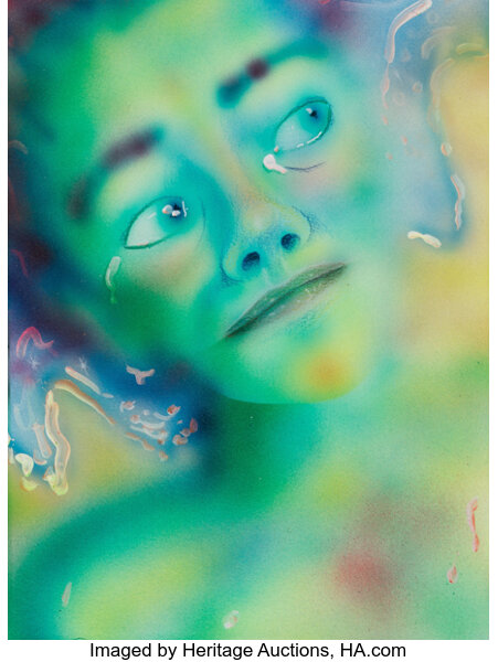 Spray paint, acrylic, and color pencil on paper