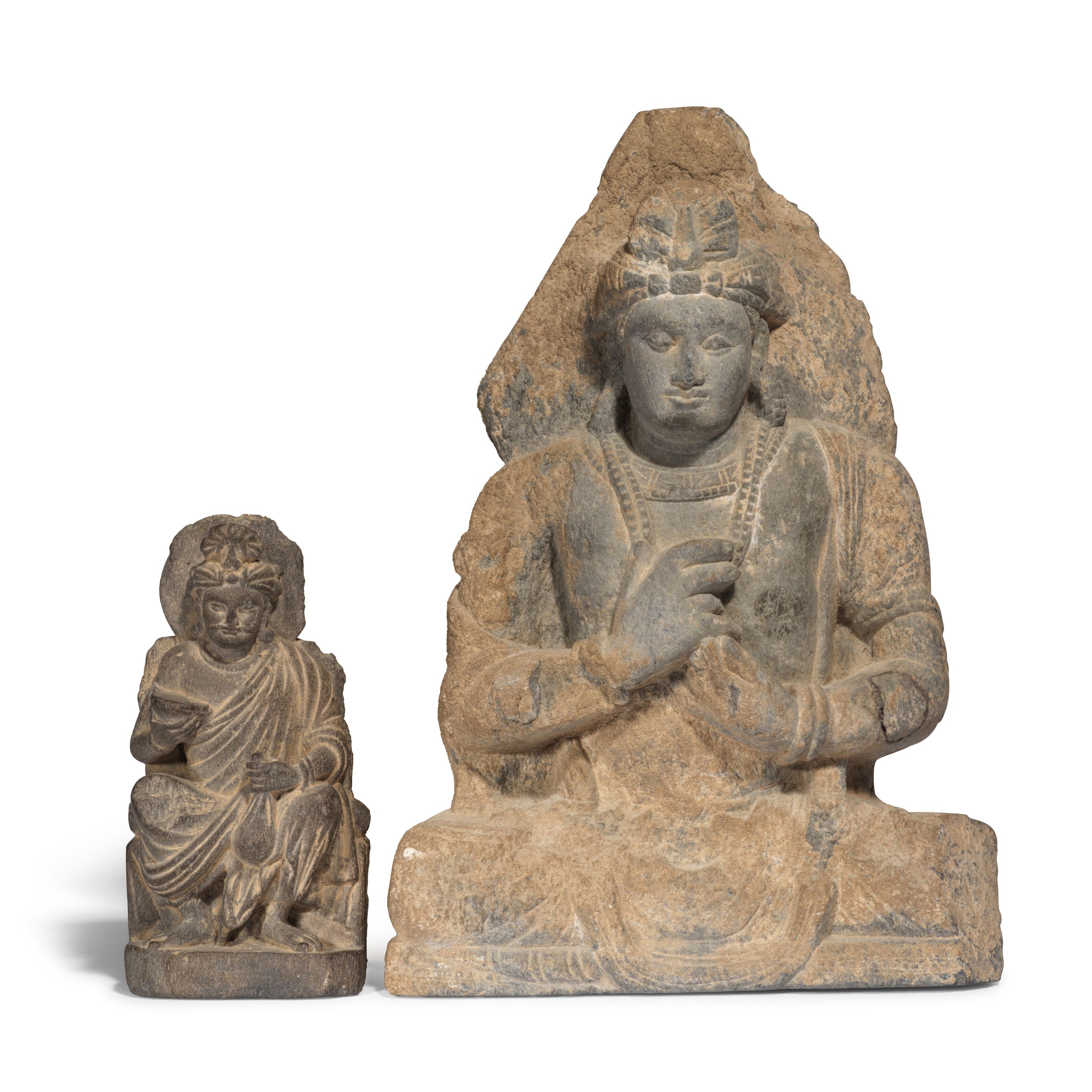 TWO GREY SCHIST BODHISATTVA FIGURES