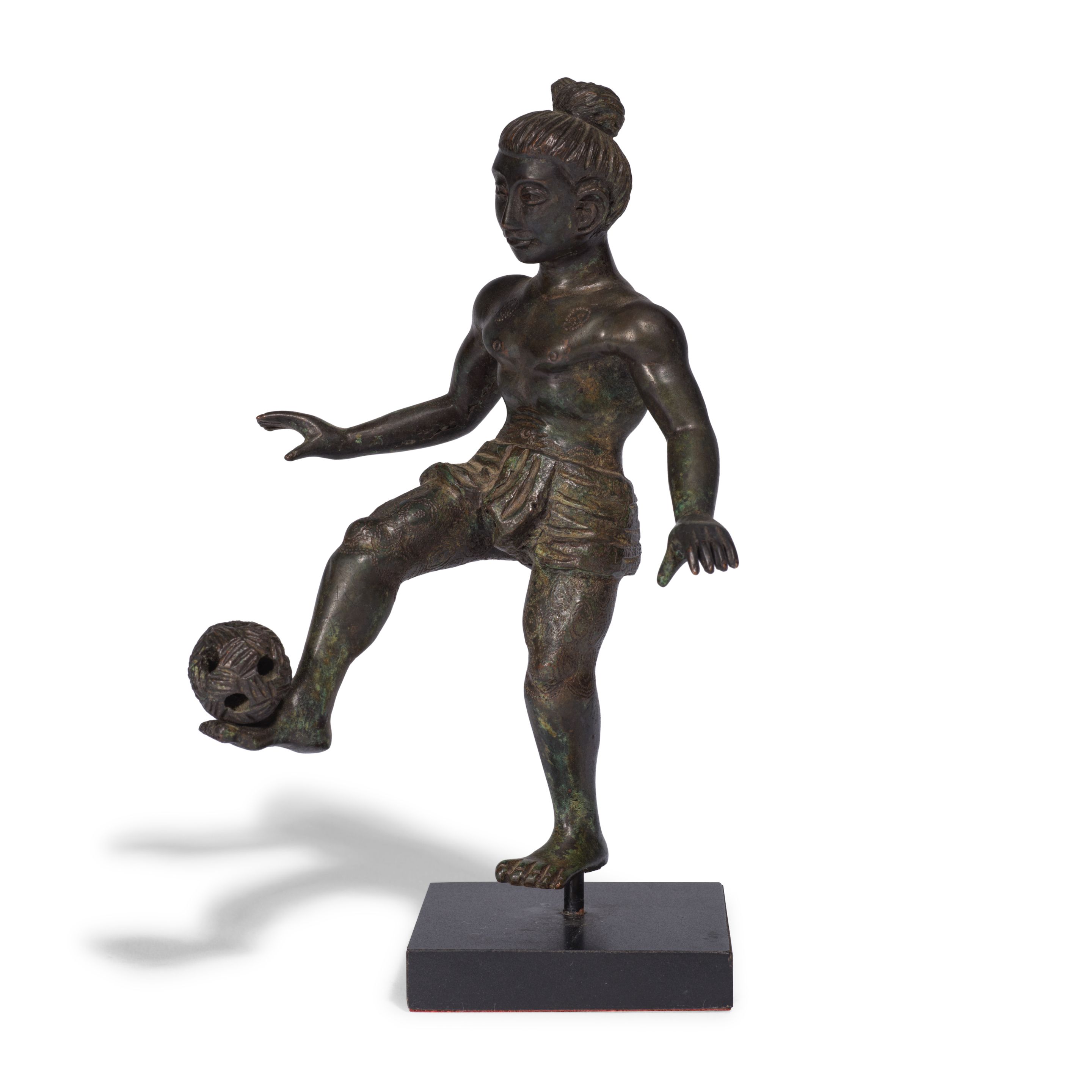 STATUETTE REPRÉSENTANT UN GARÇON BIRMAN JOUANT AU CHINLONE EN BRONZE
