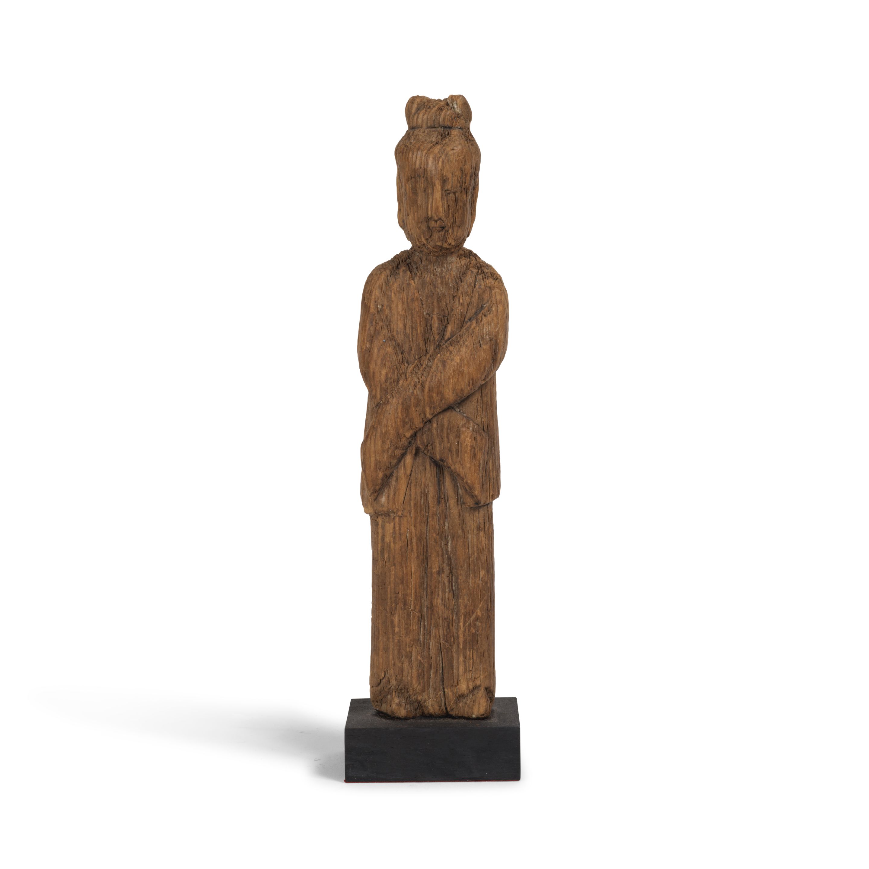A SMALL WOOD FIGURE OF A LADY