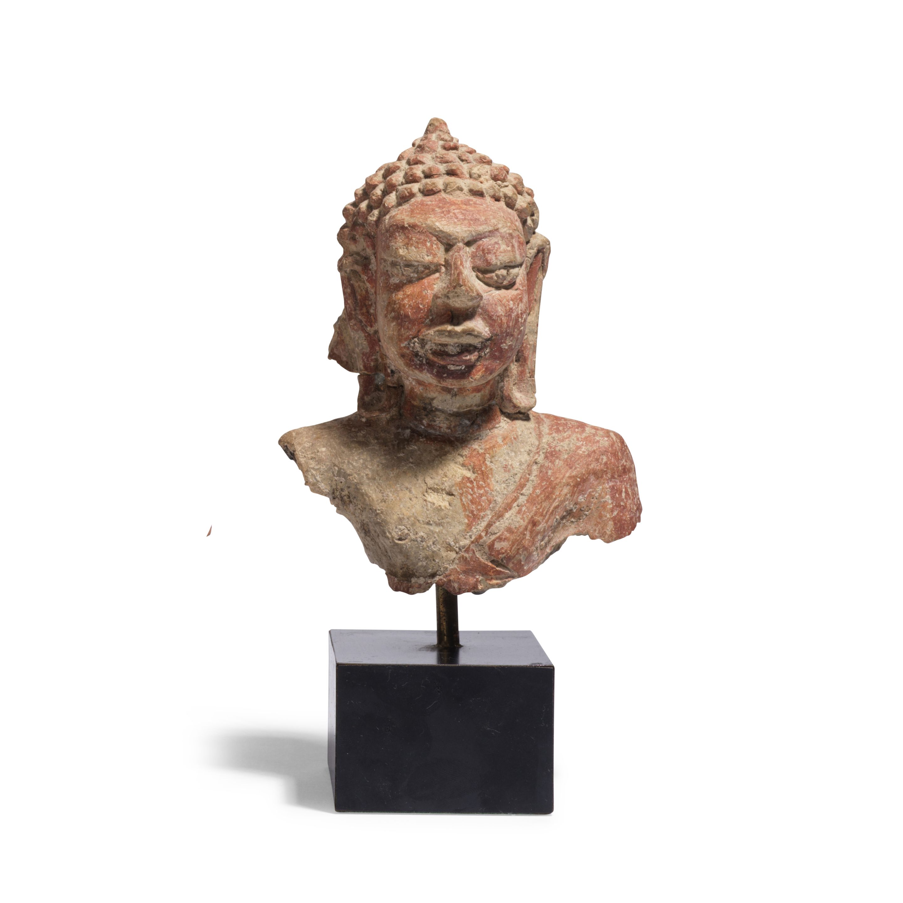 A TERRACOTTA BUST OF BUDDHA