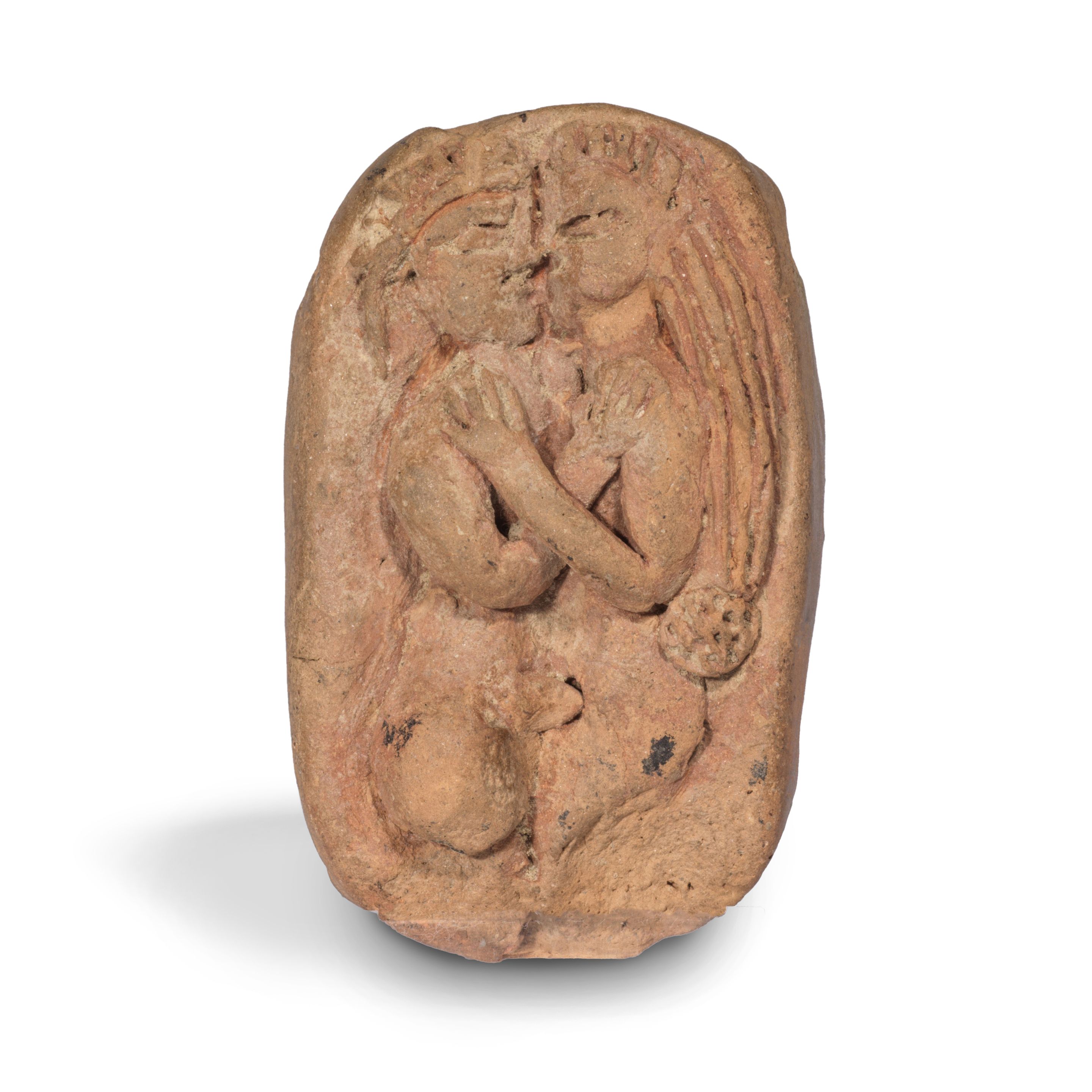 A TERRACOTTA PLAQUE DEPICTING AN EROTIC SCENE
