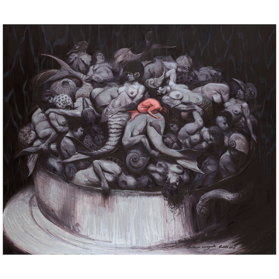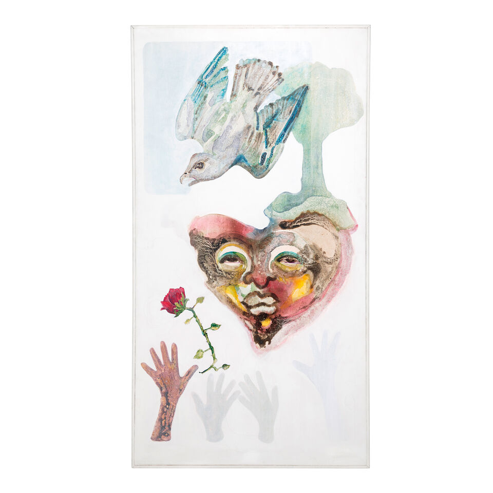 acrylic, gesso, gold leaf and Japanese paper on linen