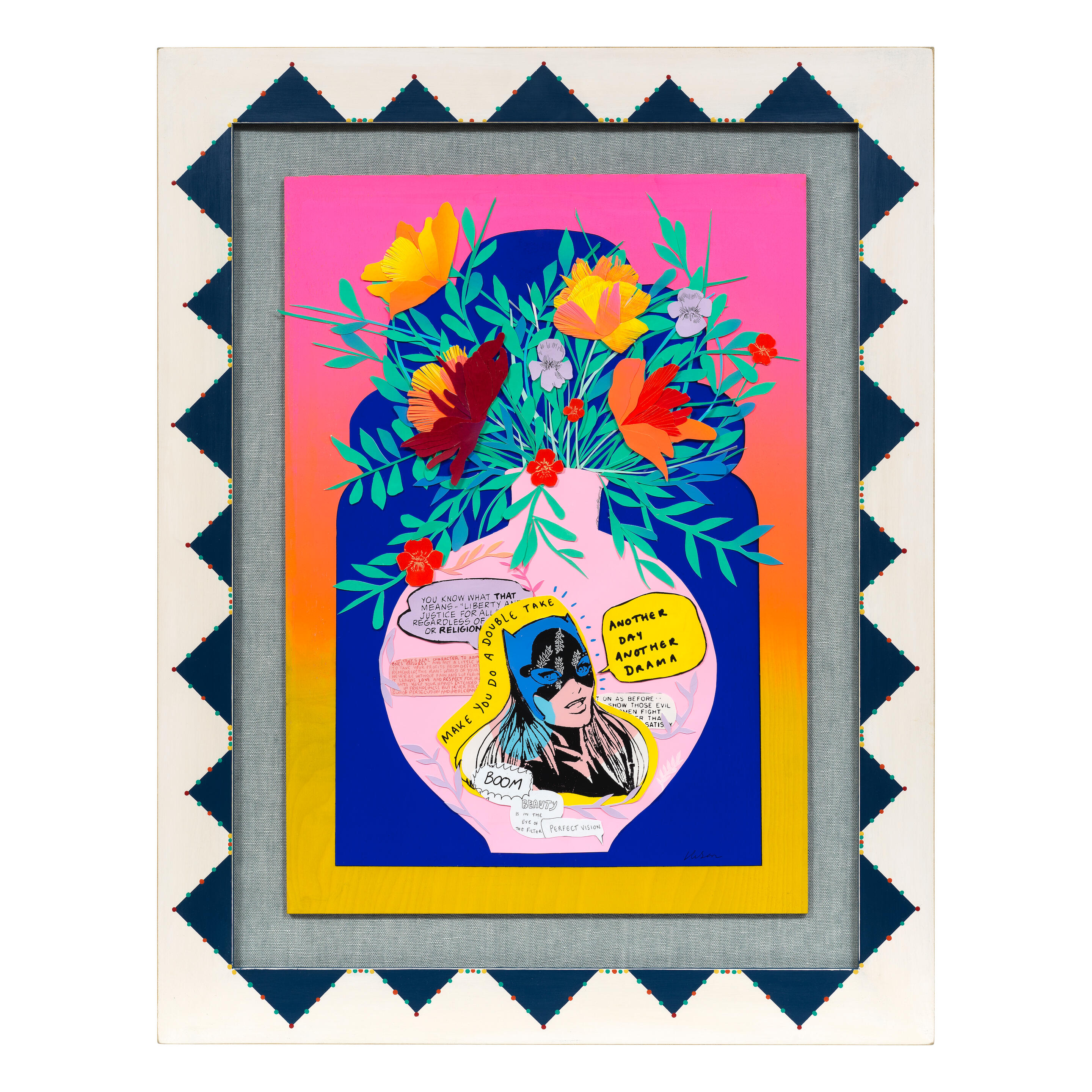 Laminated giclée print with screenprinted glitter, 2022, on...